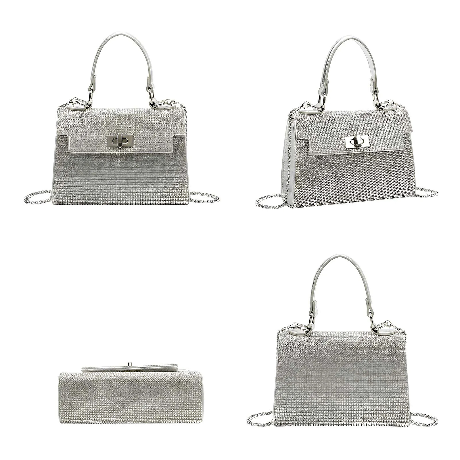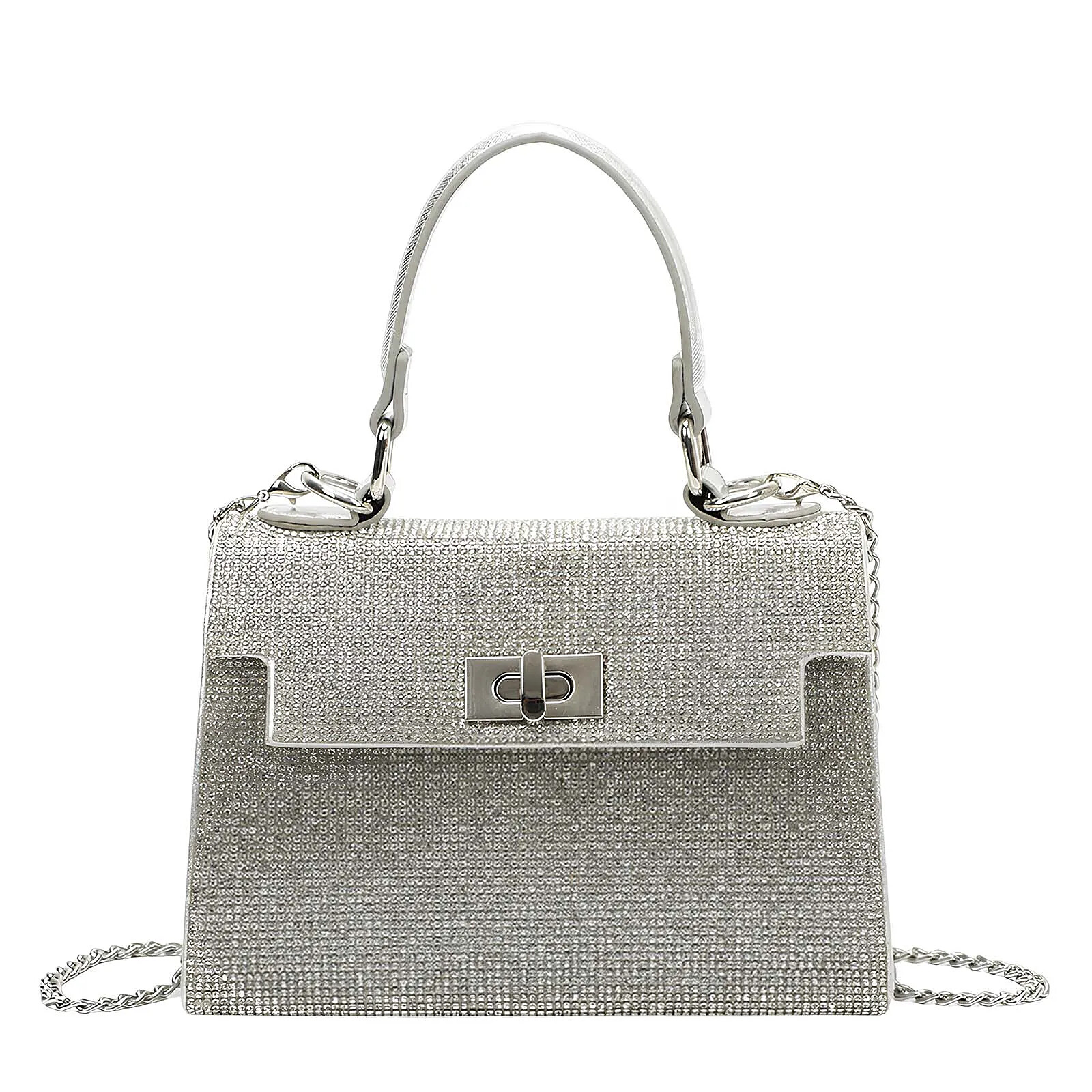 Avizar Sac à Main de Soirée pour Femme Effet Maille Scintillante avec Chaîne en Métal Argent |