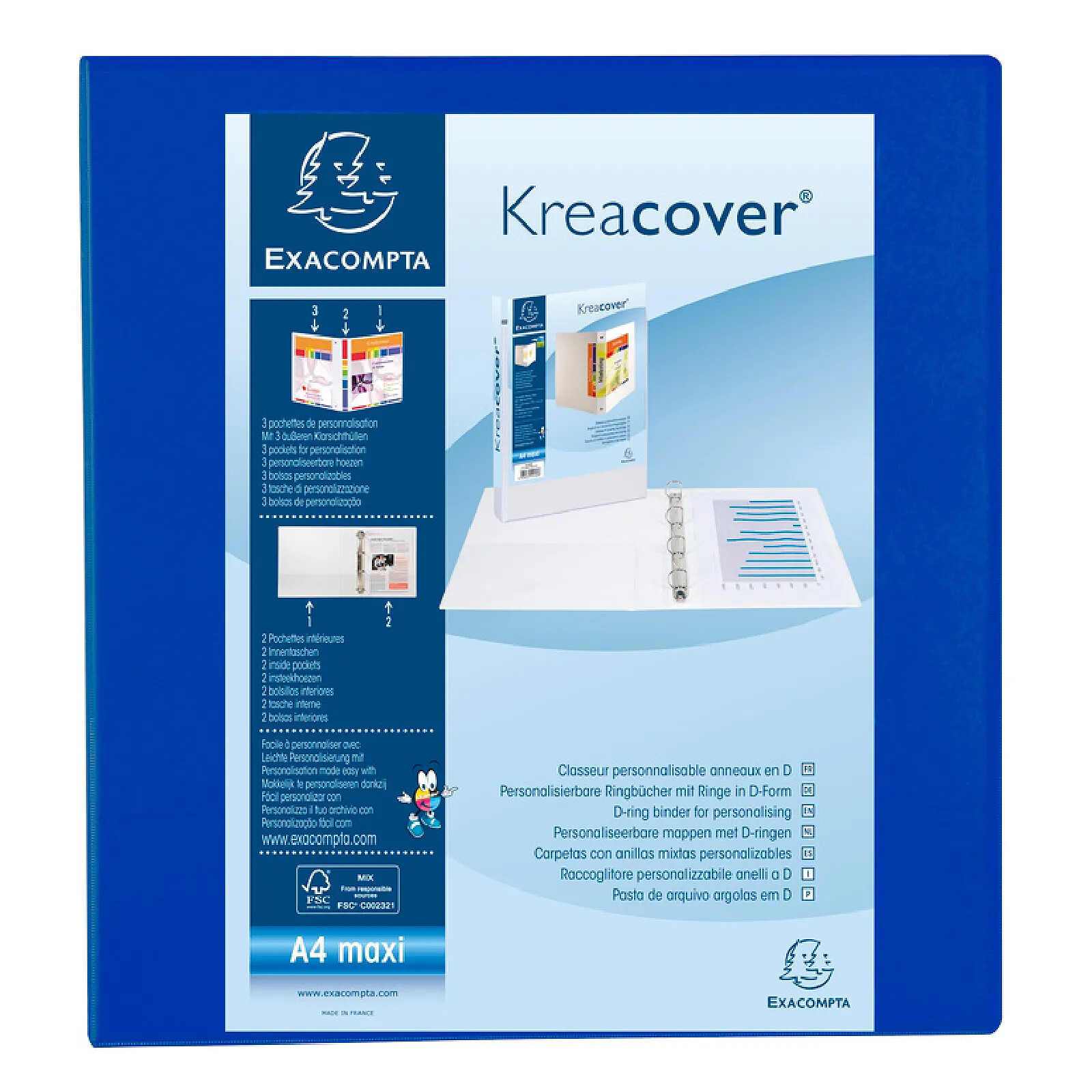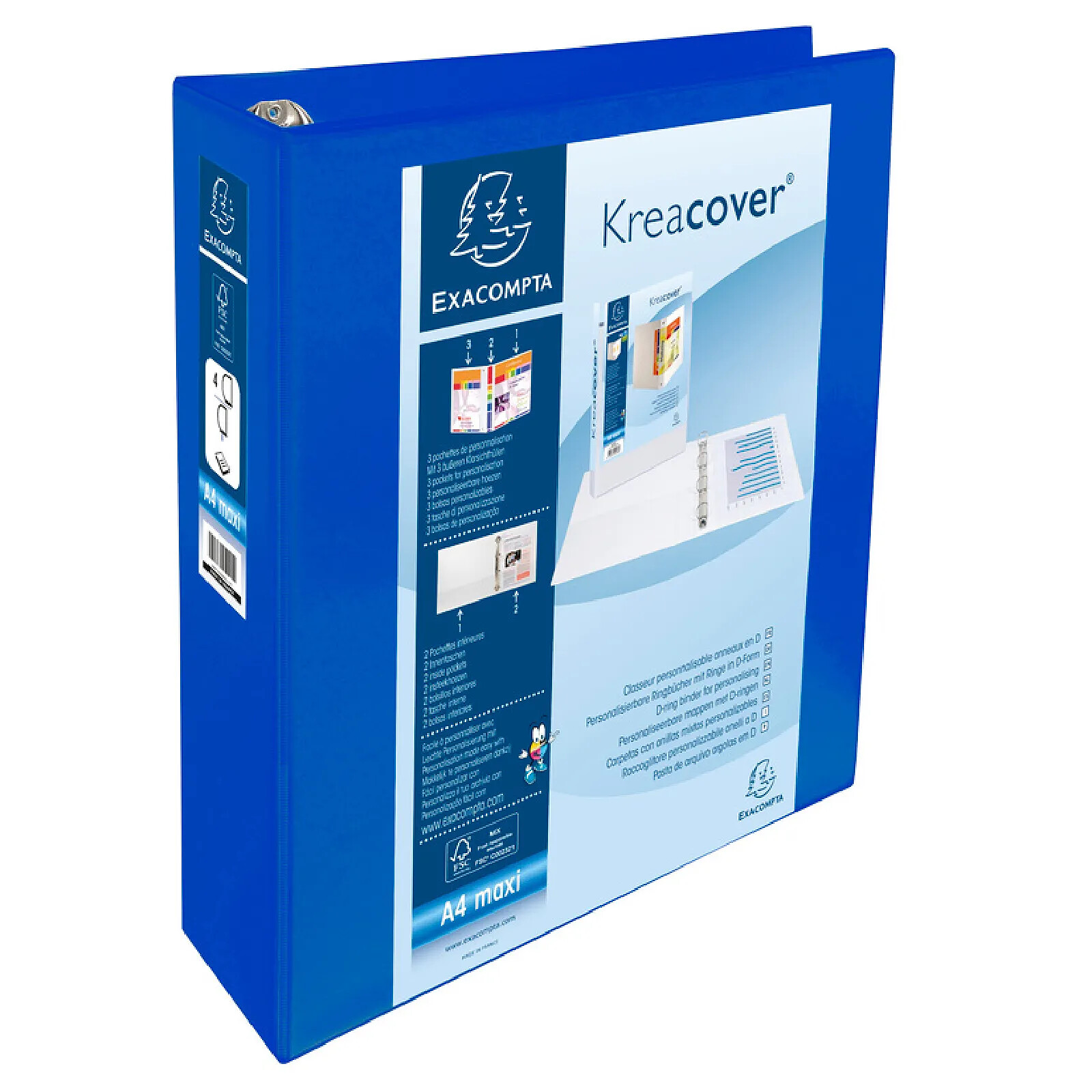 EXACOMPTA Classeur personnalisable Kreacover A4 Maxi 4 Ax Diam 60mm Dos 86 mm Bleu |