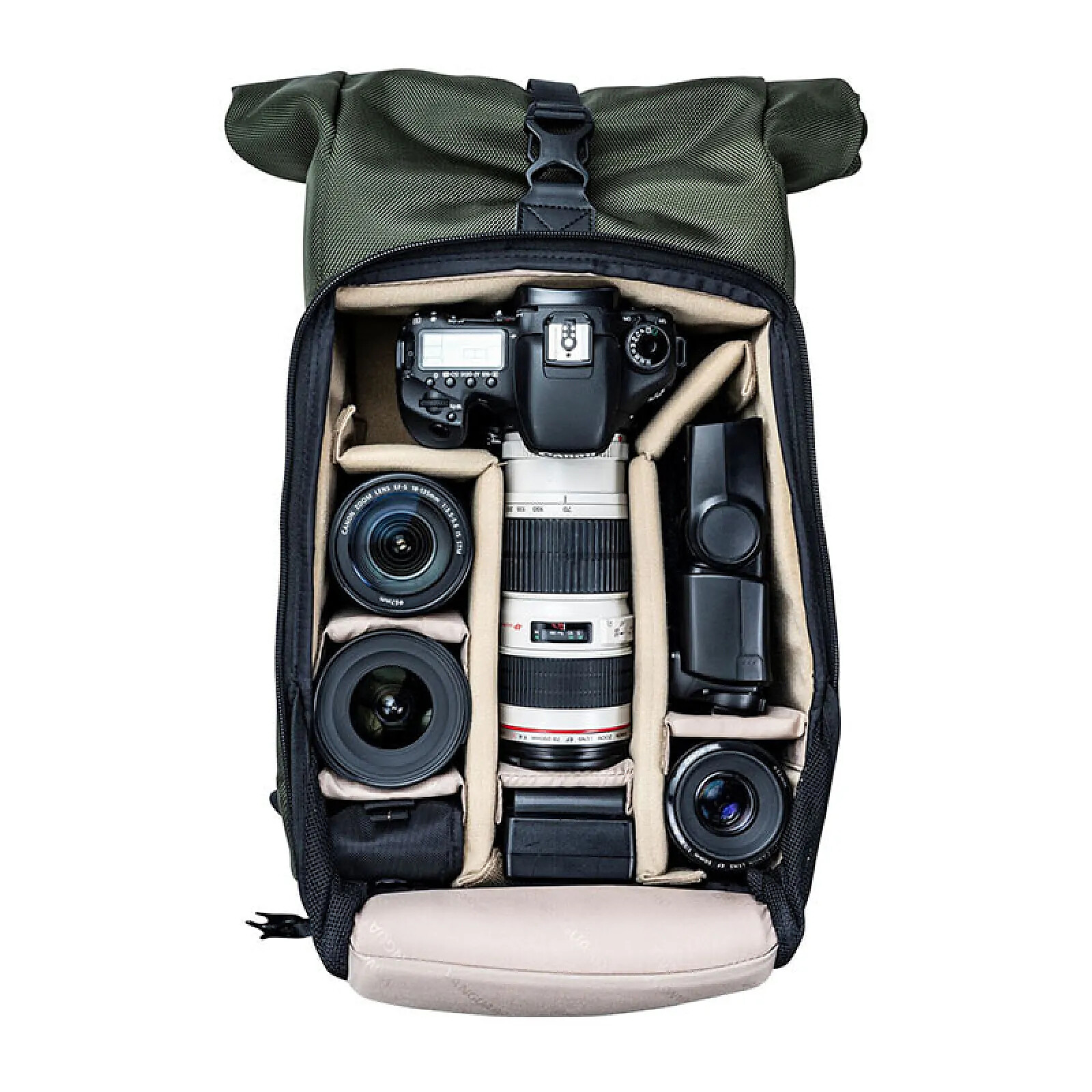 La fermeture rollup offre une section supérieure optionnelle pour votre confort, que ce soit pour votre déjeuner ou votre matériel photo supplémentaire. Déroulez simplement la fermeture à enroulement pour gagner de la place et l'utiliser au mieux. Le dos comprend également une poche dissimulée pour ranger votre passeport ou votre portefeuille en toute sécurité lors de vos déplacements.