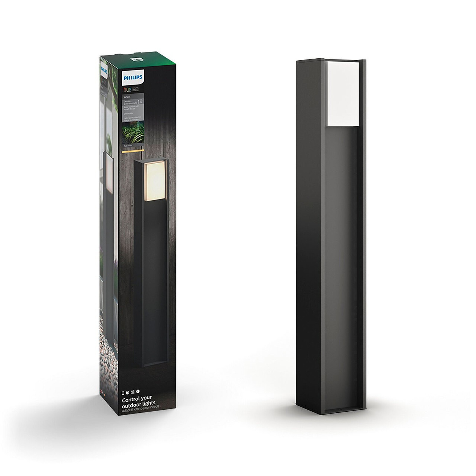La borne Philips Hue TURACO 1x9.5W - Anthracite apporte une solution d’éclairage extérieur à la fois pratique et esthétique, idéale pour les entrées de maison, les allées ou les terrasses. Dotée d’une lumière blanche chaude (2700K), elle crée une ambiance chaleureuse et accueillante, tout en offrant une commande intelligente via le pont Philips Hue. Grâce à l’application dédiée ou à des assistants vocaux comme Alexa, HomeKit ou l’Assistant Google, vous pouvez programmer l’allumage et l’extinction automatique de vos lumières, simuler une présence ou ajuster l’intensité lumineuse sans installation complexe.