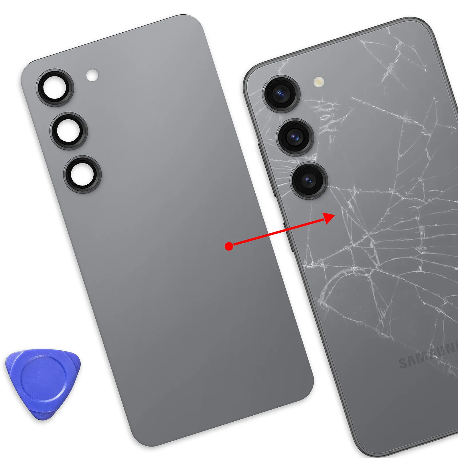 Cache batterie gris conçu pour correspondre parfaitement au Galaxy S23, permettant de restaurer l'apparence d'origine avec un ajustement précis et fiable lors de la pose