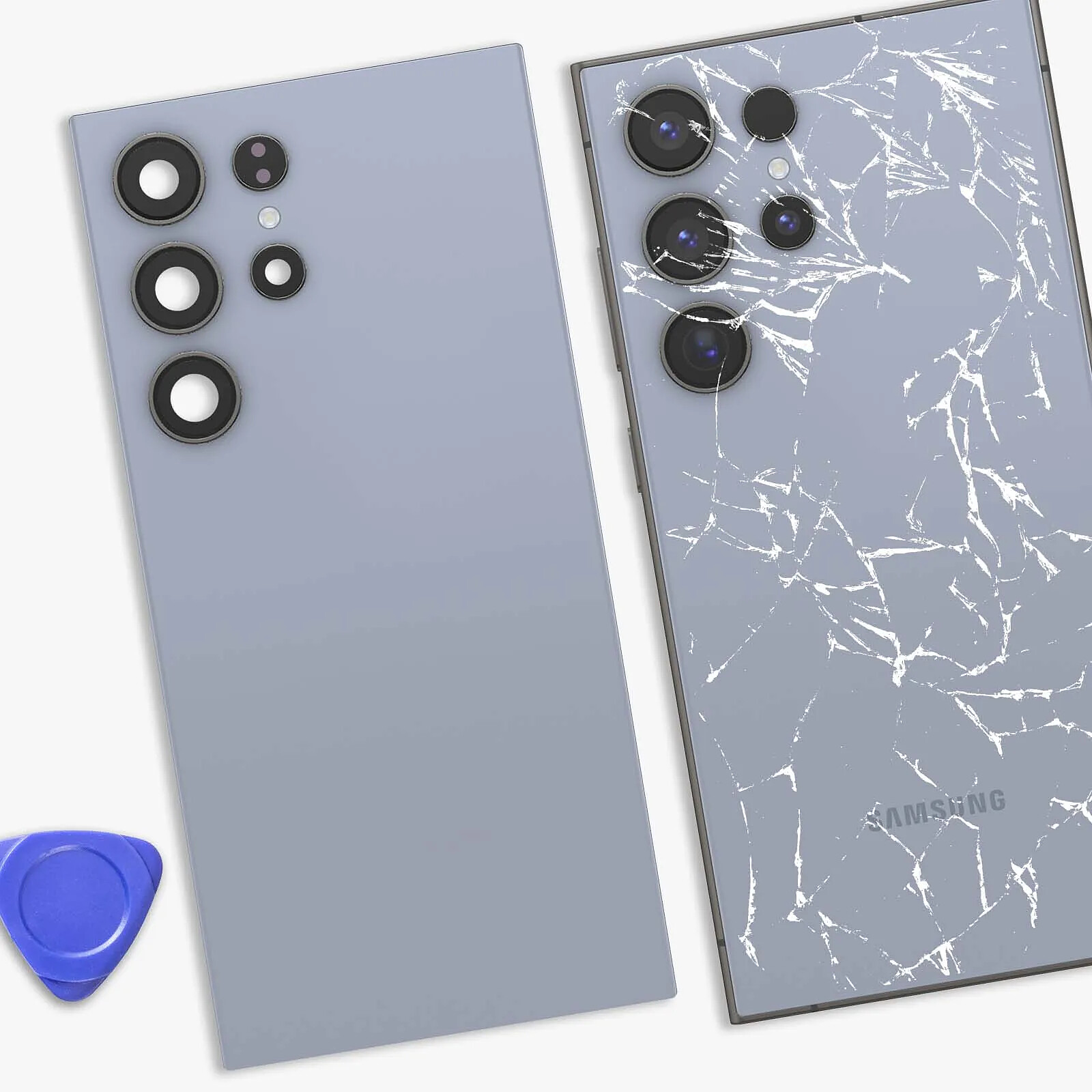 Cache batterie bleu conçu pour correspondre parfaitement au Galaxy S24 Ultra, permettant de restaurer l'apparence d'origine avec un ajustement précis et fiable lors de la pose