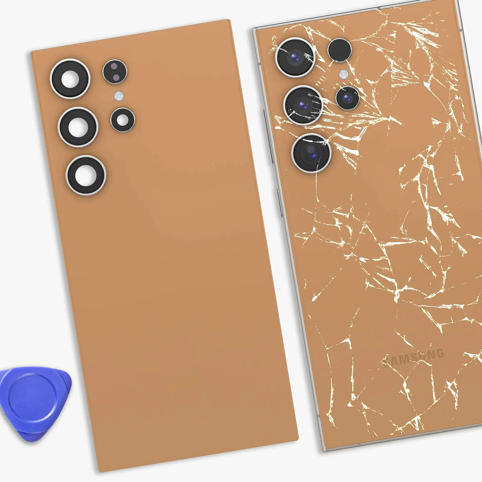 Cache batterie orange conçu pour correspondre parfaitement au Galaxy S24 Ultra, permettant de restaurer l'apparence d'origine avec un ajustement précis et fiable lors de la pose