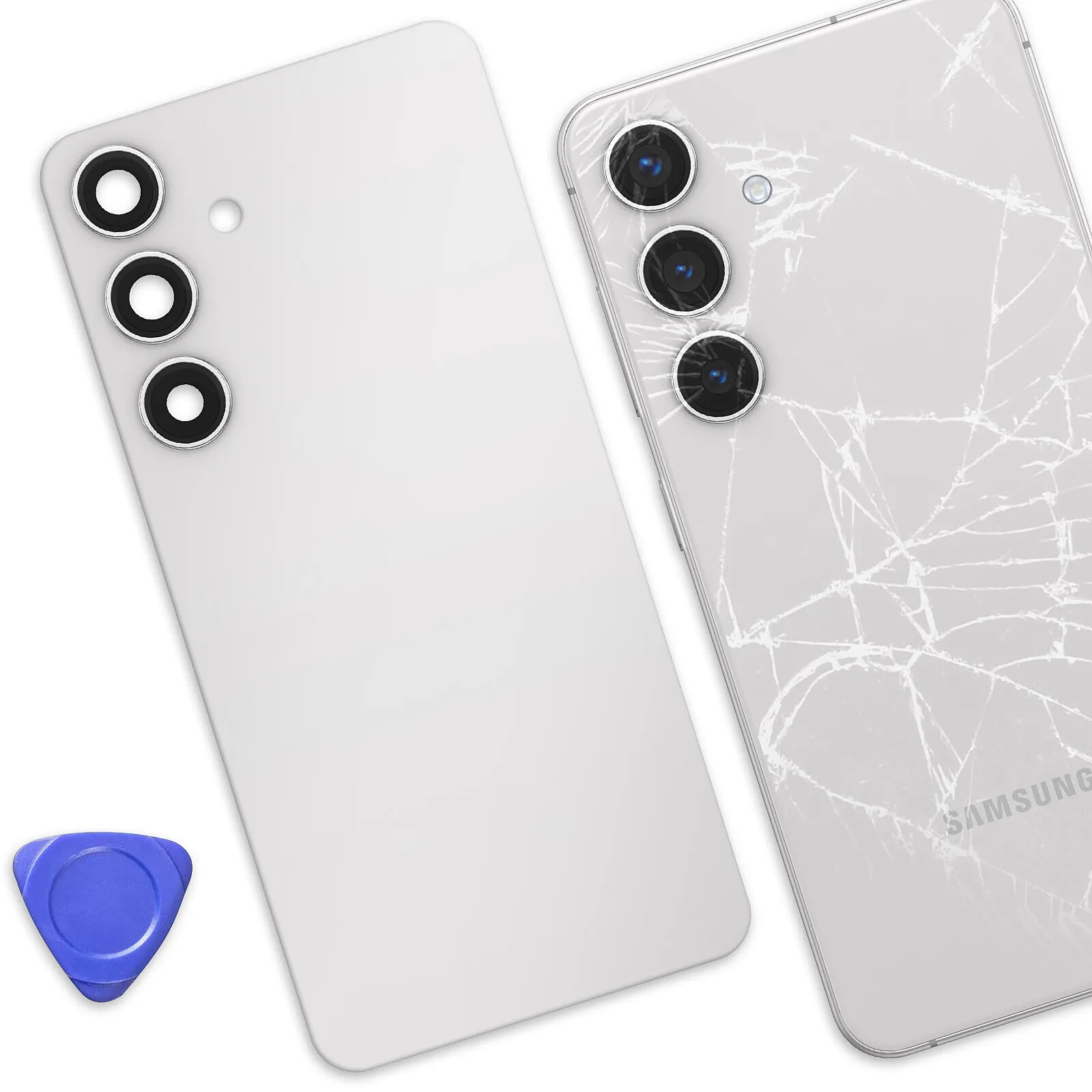 Cache batterie argent conçu pour correspondre parfaitement au Galaxy S24, permettant de restaurer l'apparence d'origine avec un ajustement précis et fiable lors de la pos