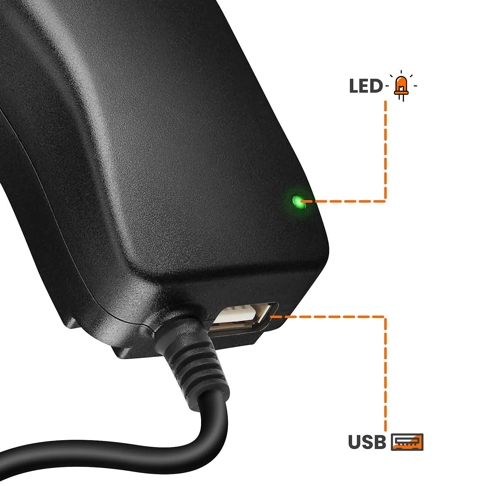 MAXEXCELL Chargeur Secteur 30W Tension Réglable 3-12V avec USB et 6 Embouts Inclus Noir