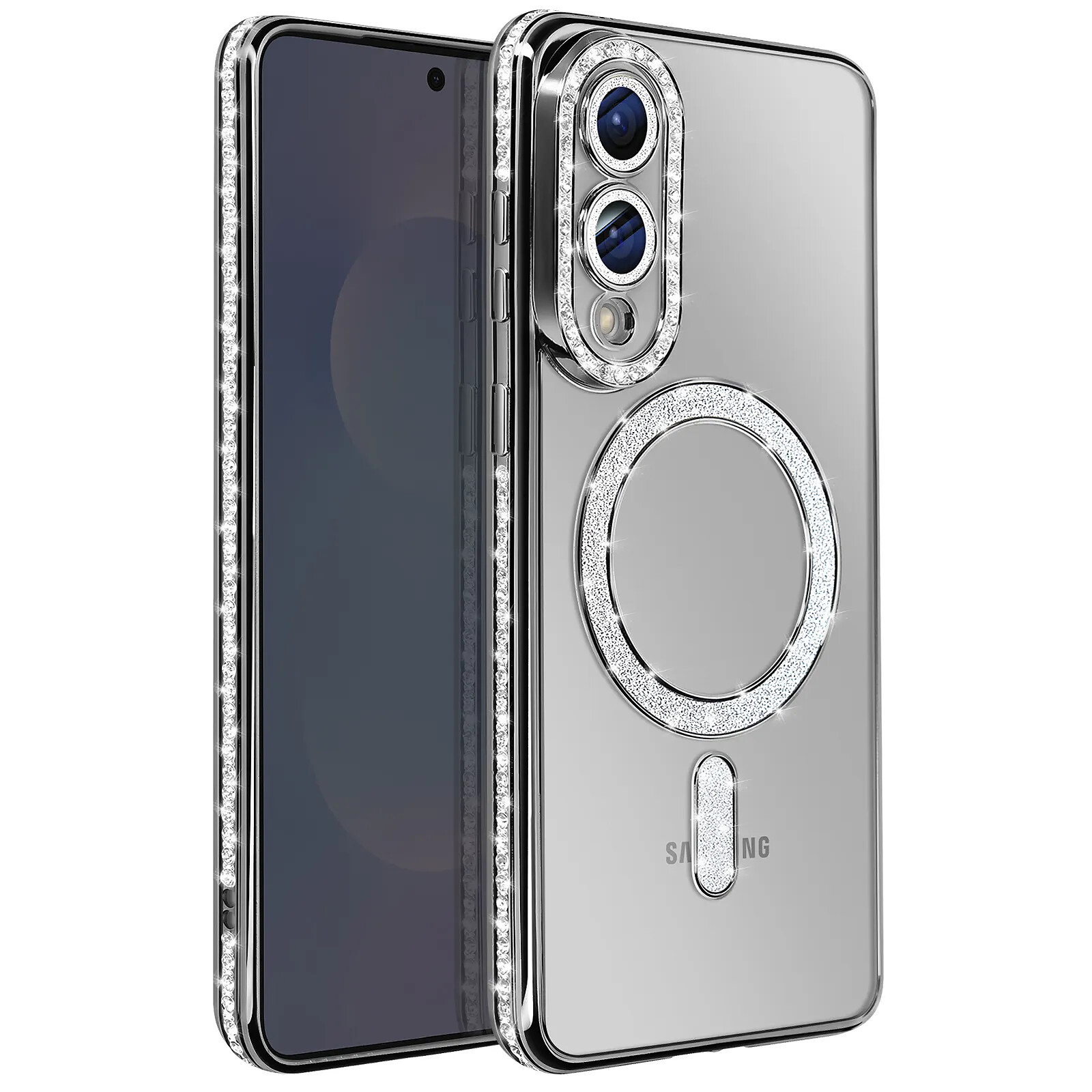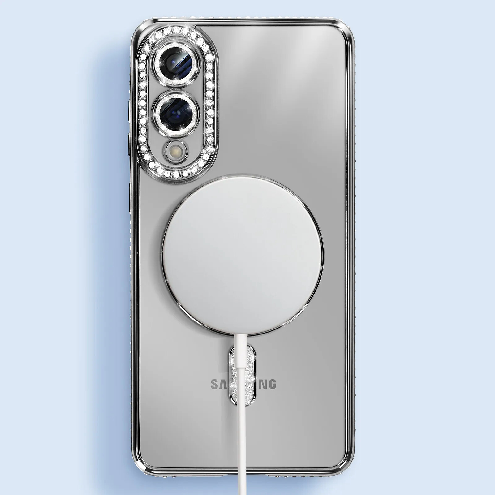 Offrez protection et élégance à votre Galaxy S25 Edge avec cette coque Diamant MagSafe. Conçue avec un contour noir incrusté de strass scintillants et un bloc caméra renforcé, elle allie style et sécurité. Son anneau magnétique intégré permet une compatibilité totale avec les accessoires MagSafe. Transparente, elle met en valeur le design du téléphone tout en le protégeant contre les rayures, chocs et les chutes.