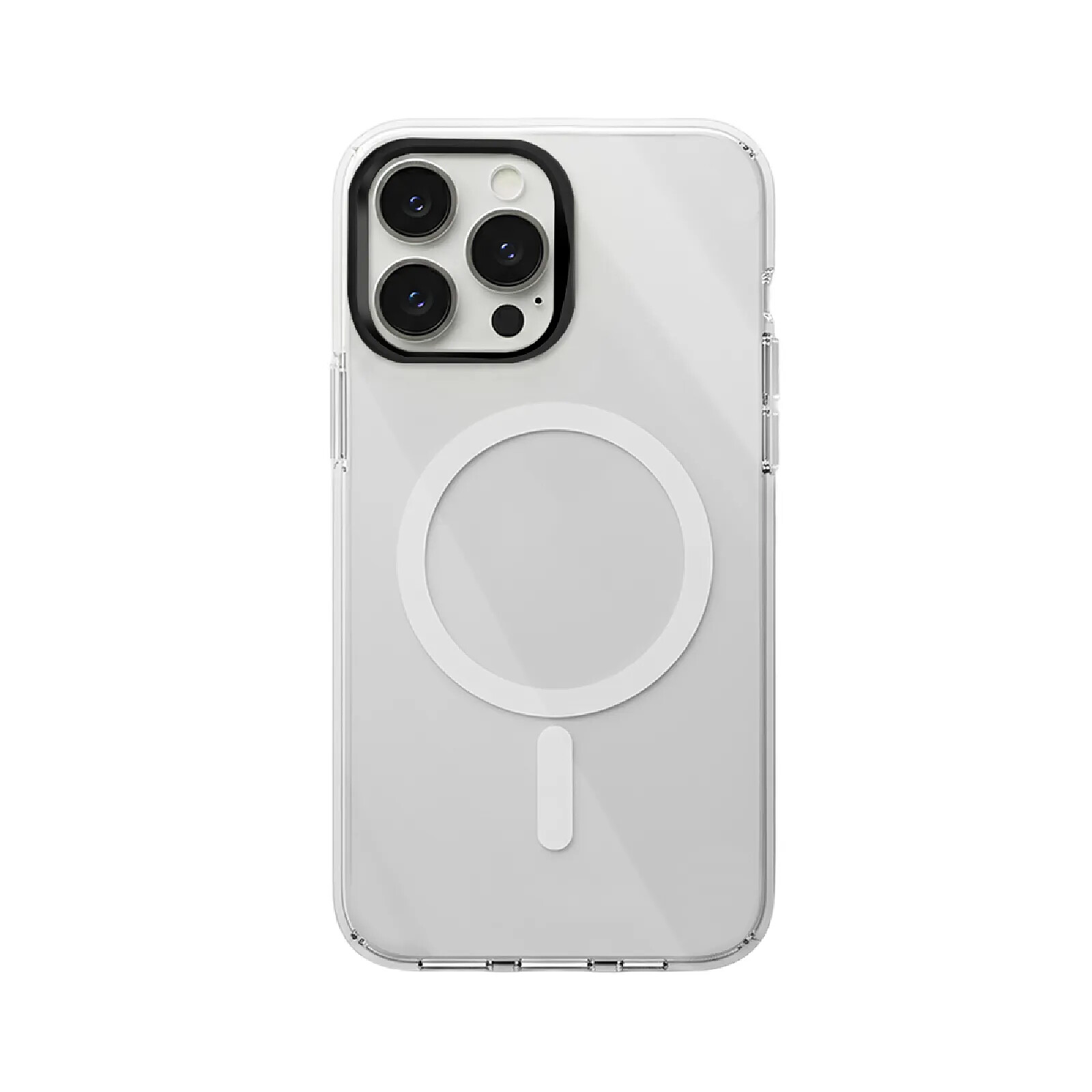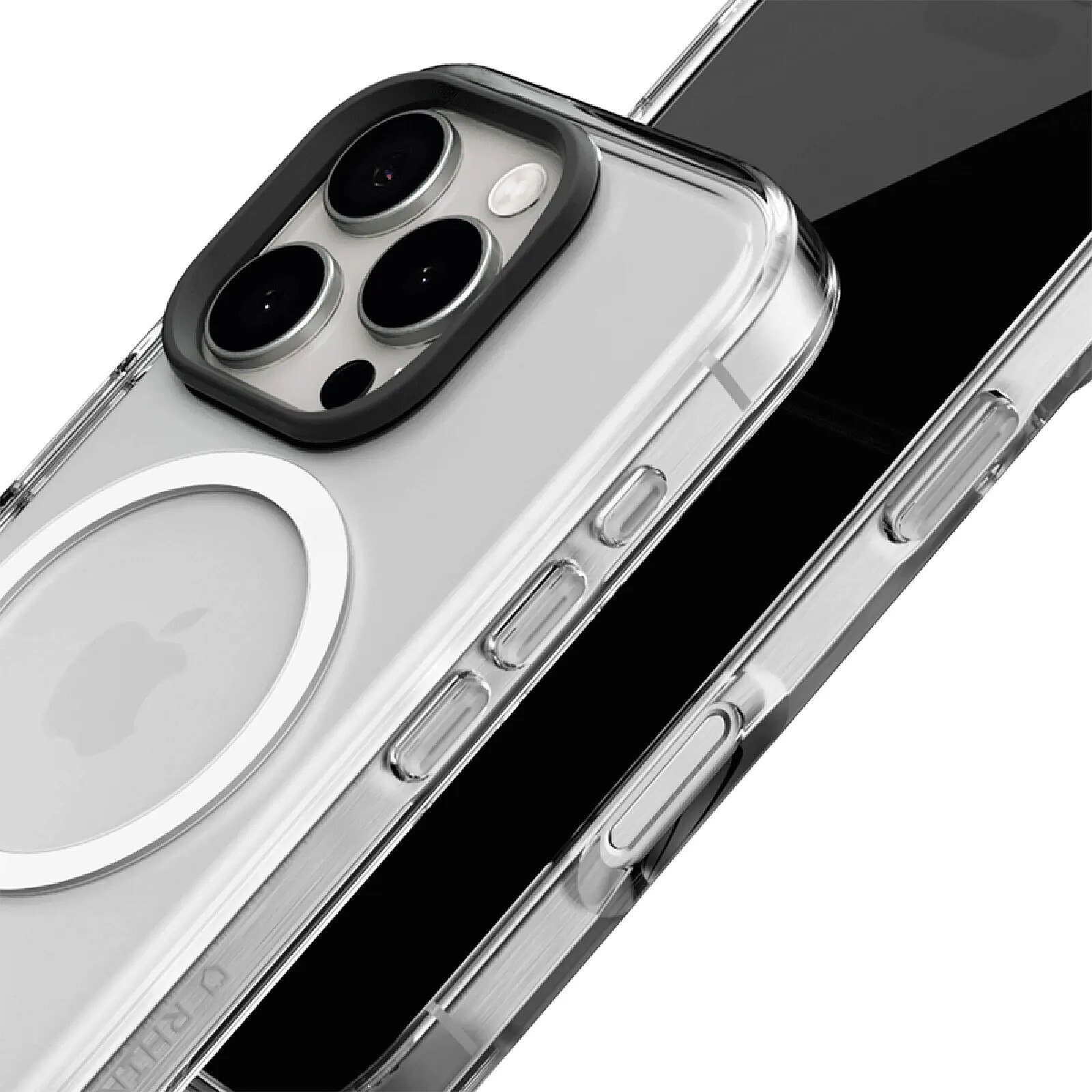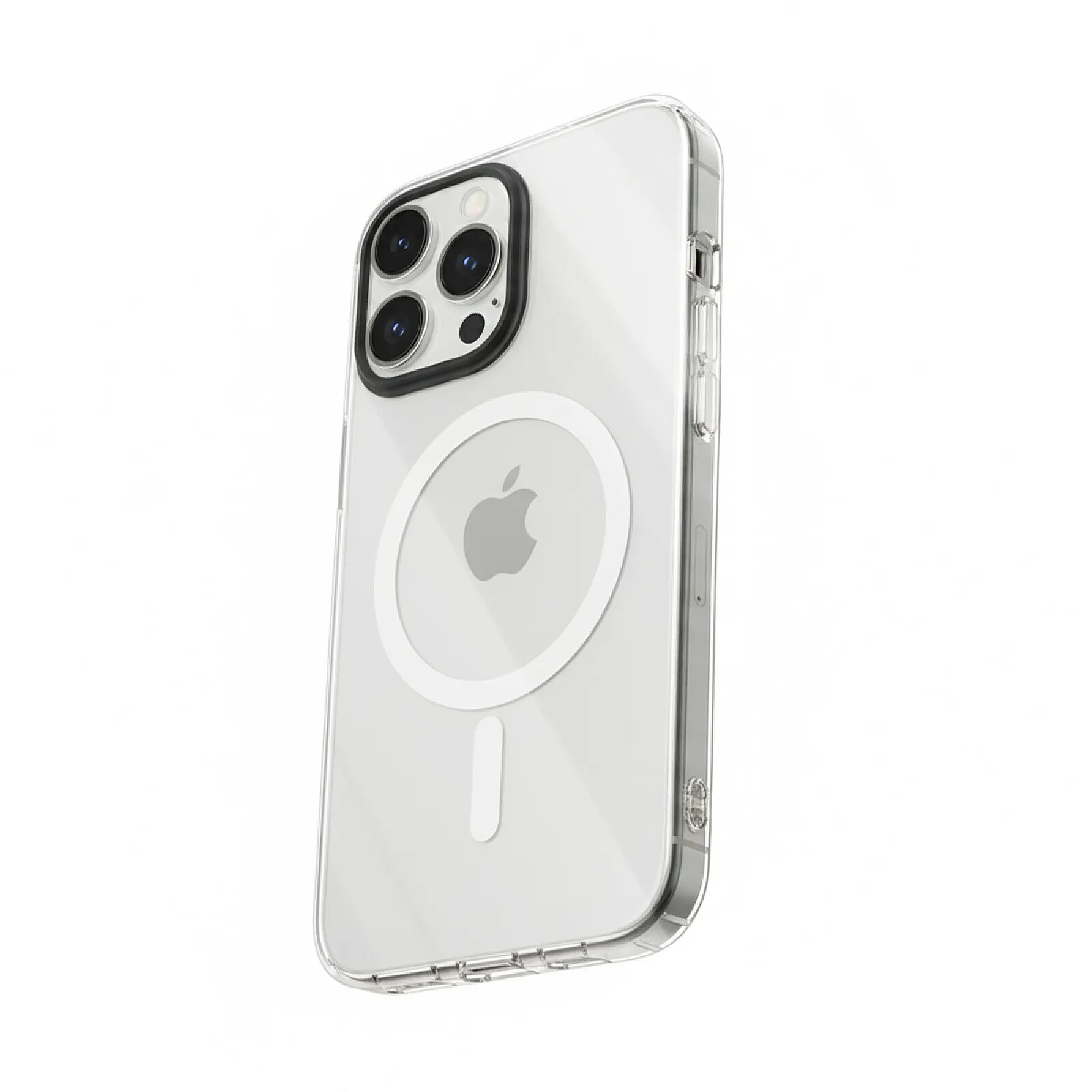 Cette coque pour iPhone 16 Pro Max présente un dos avec anneau circulaire intégré permettant la fixation magnétique et la recharge sans fil. Sa structure combine un dos rigide et un contour périphérique conçu pour absorber les chocs. Les coins renforcés avec zones épaissies limitent les impacts lors des chutes, tandis que le contour légèrement surélevé autour du module photo réduit les contacts avec les surfaces.