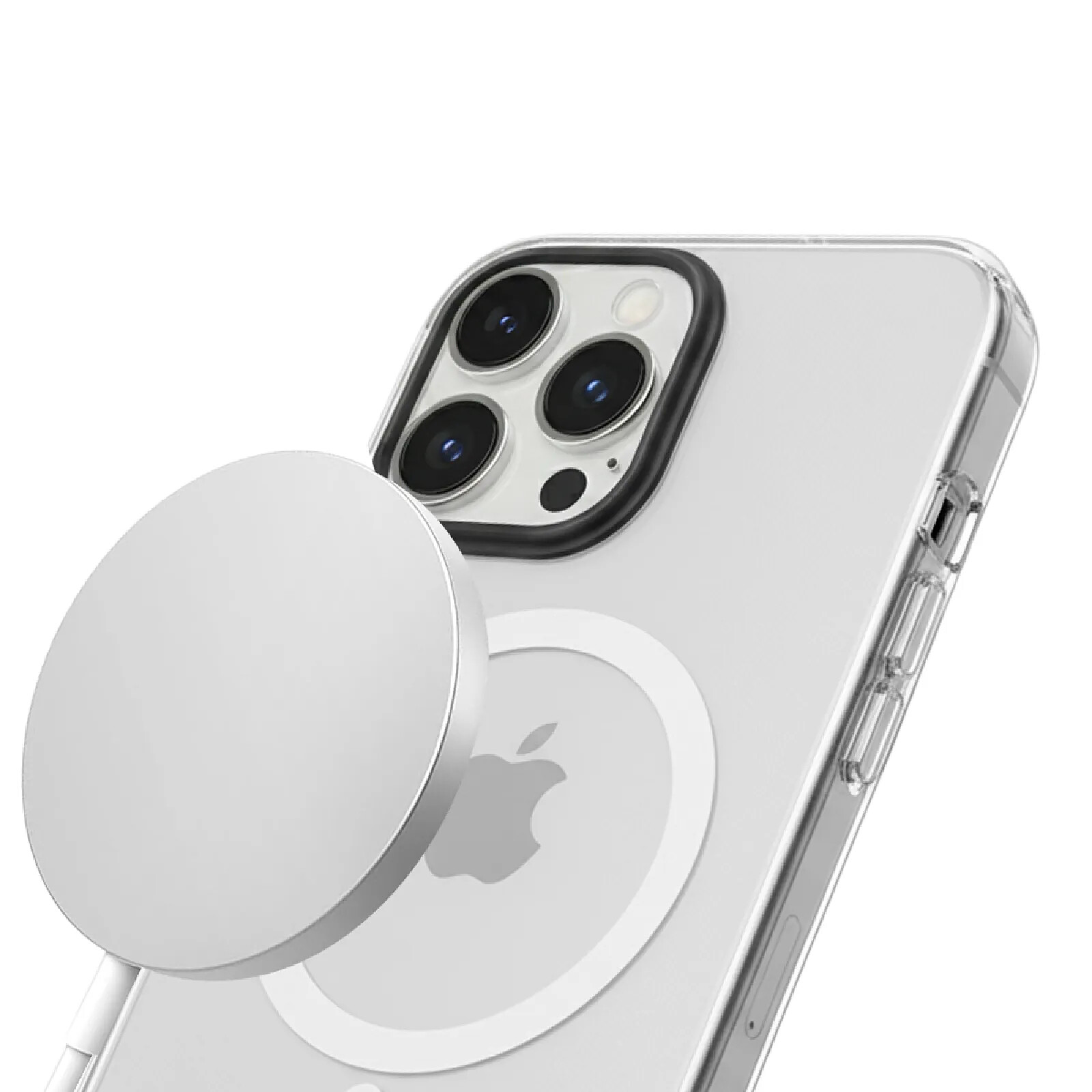 L'anneau circulaire intégré au dos permet l'alignement magnétique avec les accessoires MagSafe et la recharge sans fil