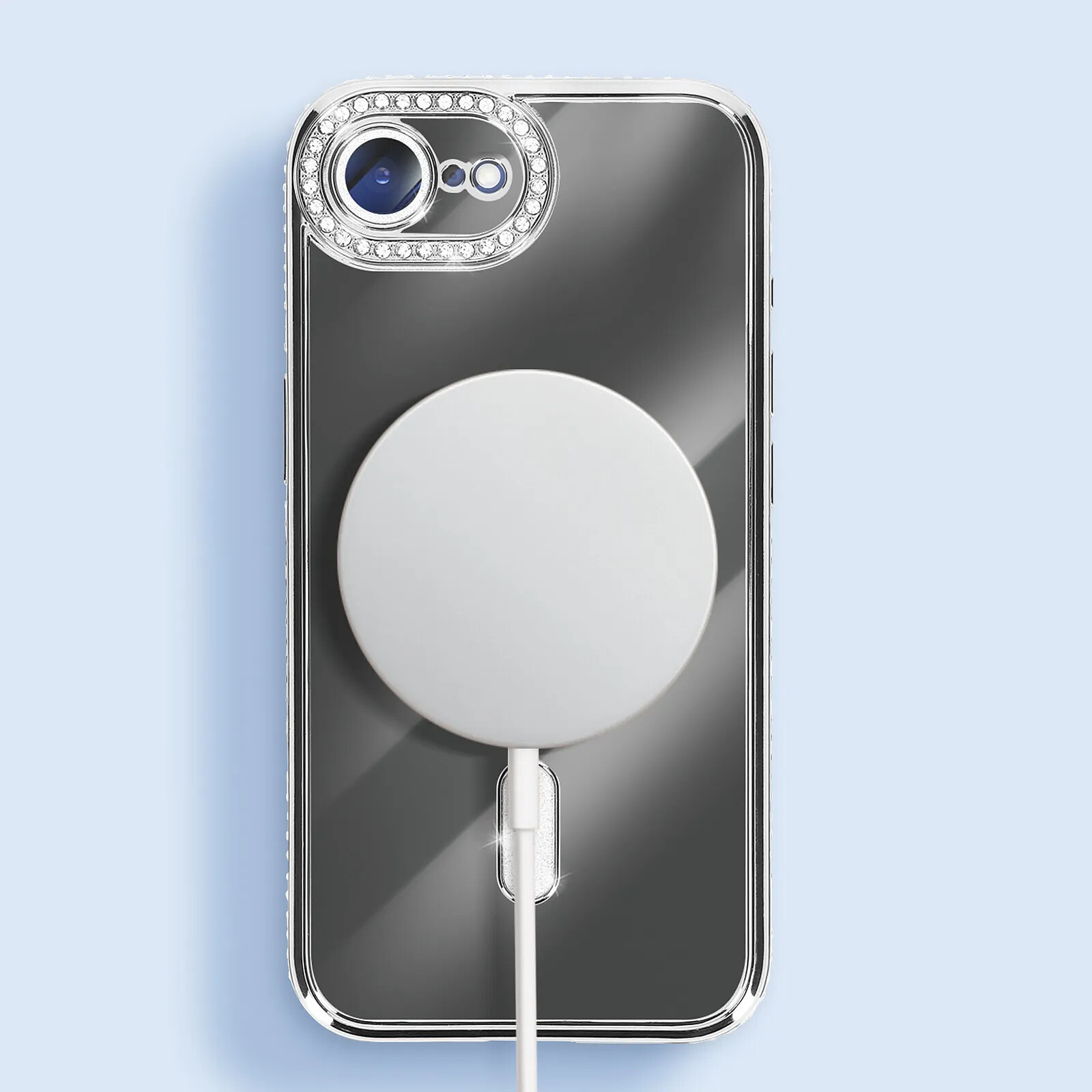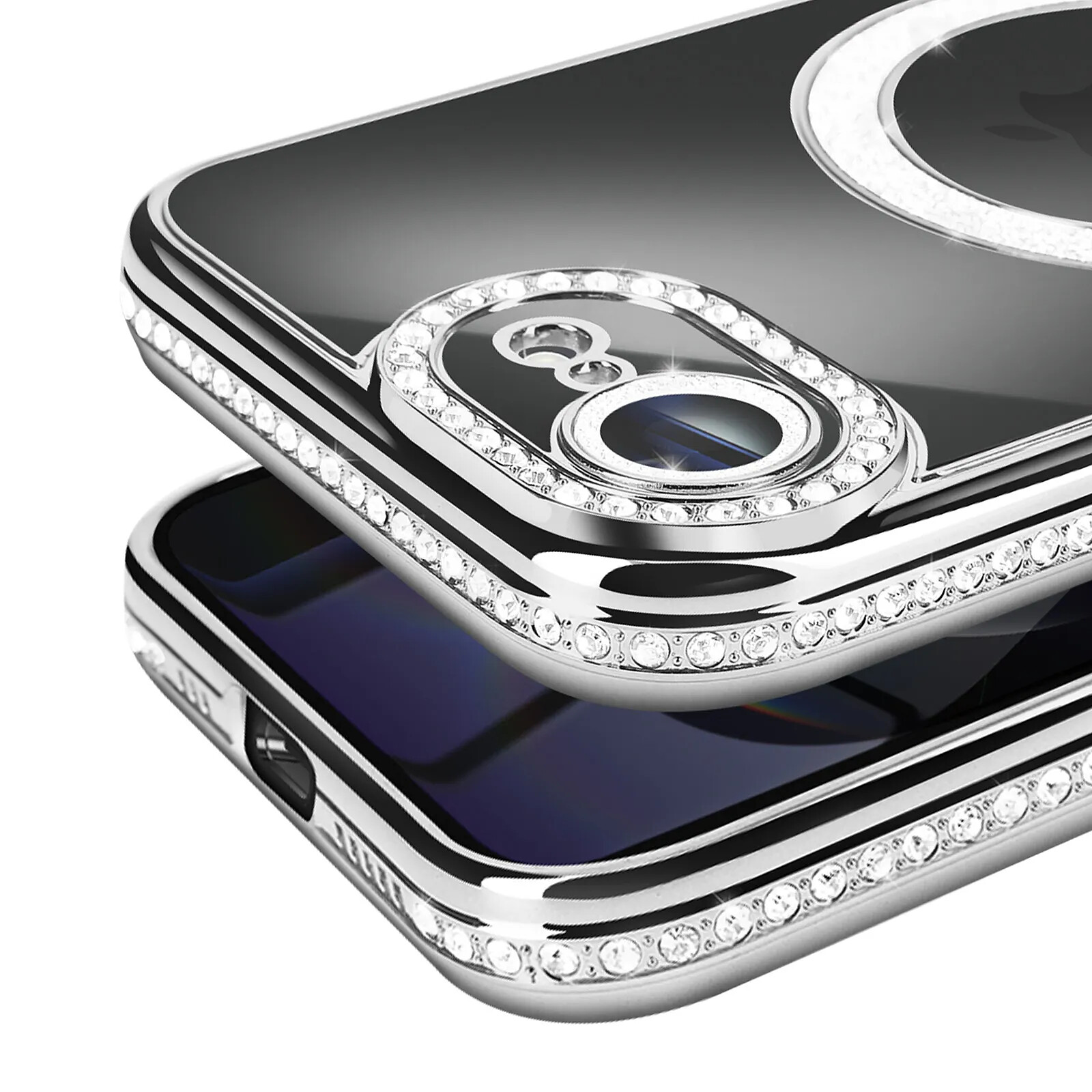 Avizar Coque pour iPhone 16e Compatible MagSafe avec Contour Strassé Argent |