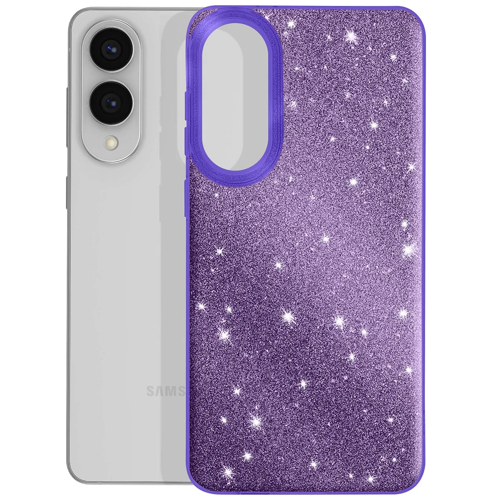 Avizar Coque pour Galaxy S25 Edge Conception Bi-Matière et Finition Pailletée Violet |