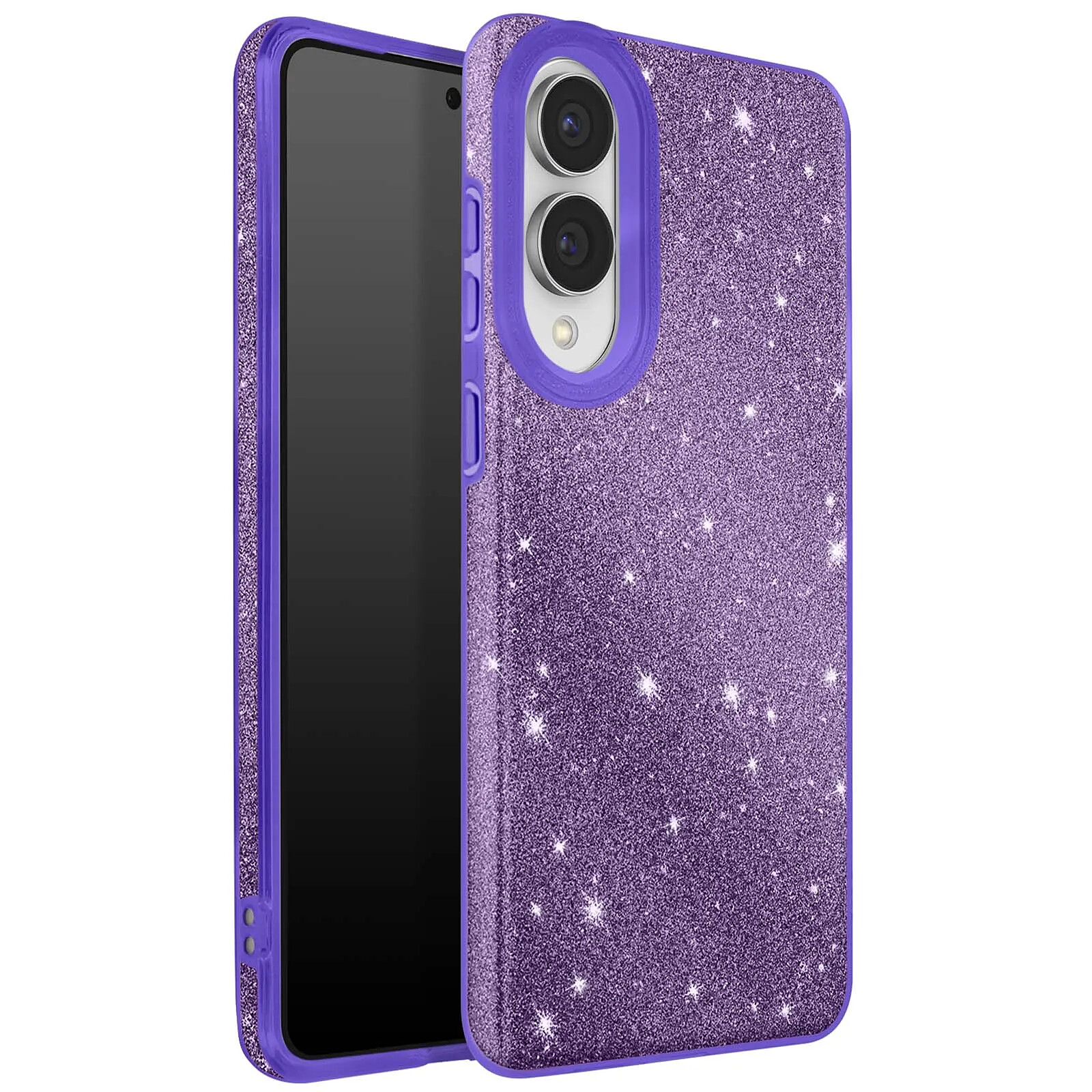 Avizar Coque pour Galaxy S25 Edge Conception Bi-Matière et Finition Pailletée Violet