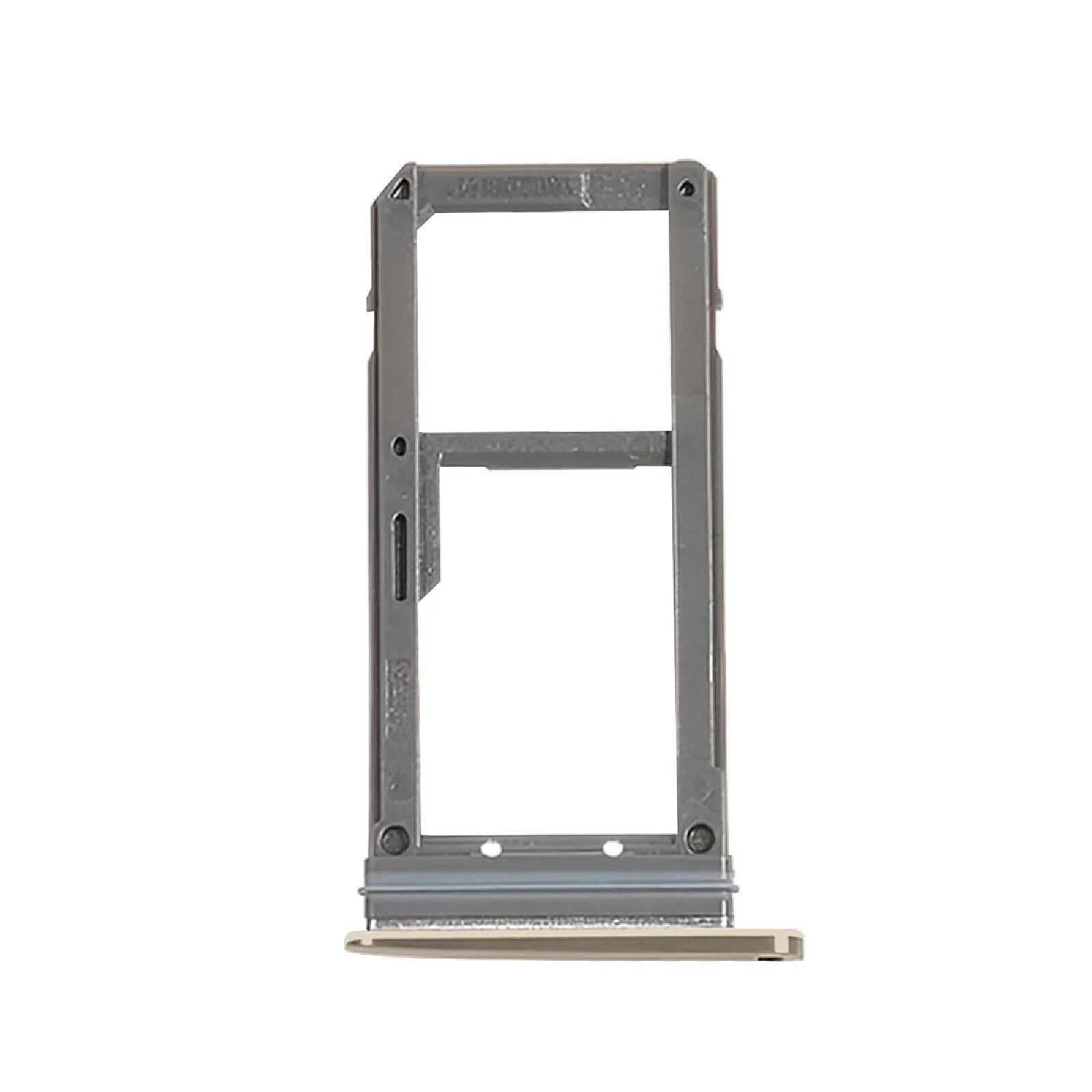 Tiroir support de remplacement pour smartphone Samsung Galaxy S7 edge. Emplacement double prévu pour carte Nano SIM et carte Micro SD. Finition dorée conforme au tiroir d'origine. Conception rigide en plastique injecté avec renforts pour un bon maintien dans le logement latéral. Permet de restaurer les fonctions d'insertion SIM et extension mémoire sans intervention technique.
