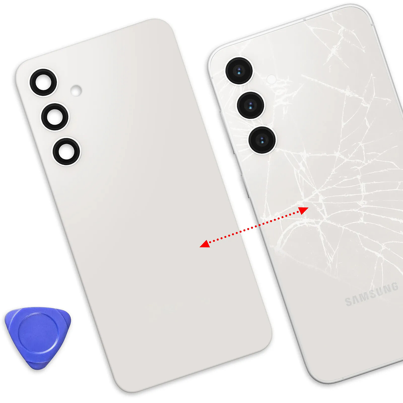 Cache batterie blanc conçu pour correspondre parfaitement au Galaxy S23 FE, permettant de restaurer l'apparence d'origine avec un ajustement précis et fiable lors de la pose