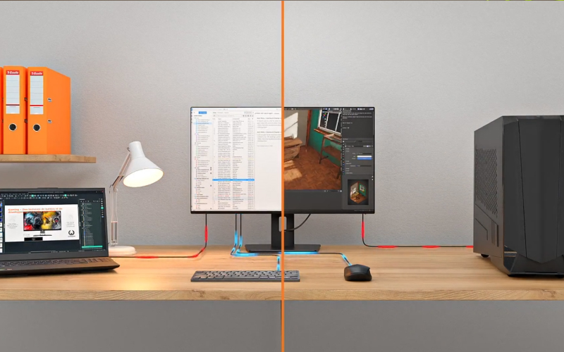 Ce modèle inclut un port USB-C avec Power Delivery de 95 W, ce qui permet d’alimenter et d’afficher simultanément un portable via un seul câble, réduisant l’encombrement. Le switch KVM intégré vous donne la possibilité de commander plusieurs ordinateurs avec un seul clavier et une seule souris, simplifiant les configurations multi-PC. Un hub USB à quatre ports, la technologie Flicker-Free ainsi que la réduction de lumière bleue améliorent le confort visuel sur les longues sessions.