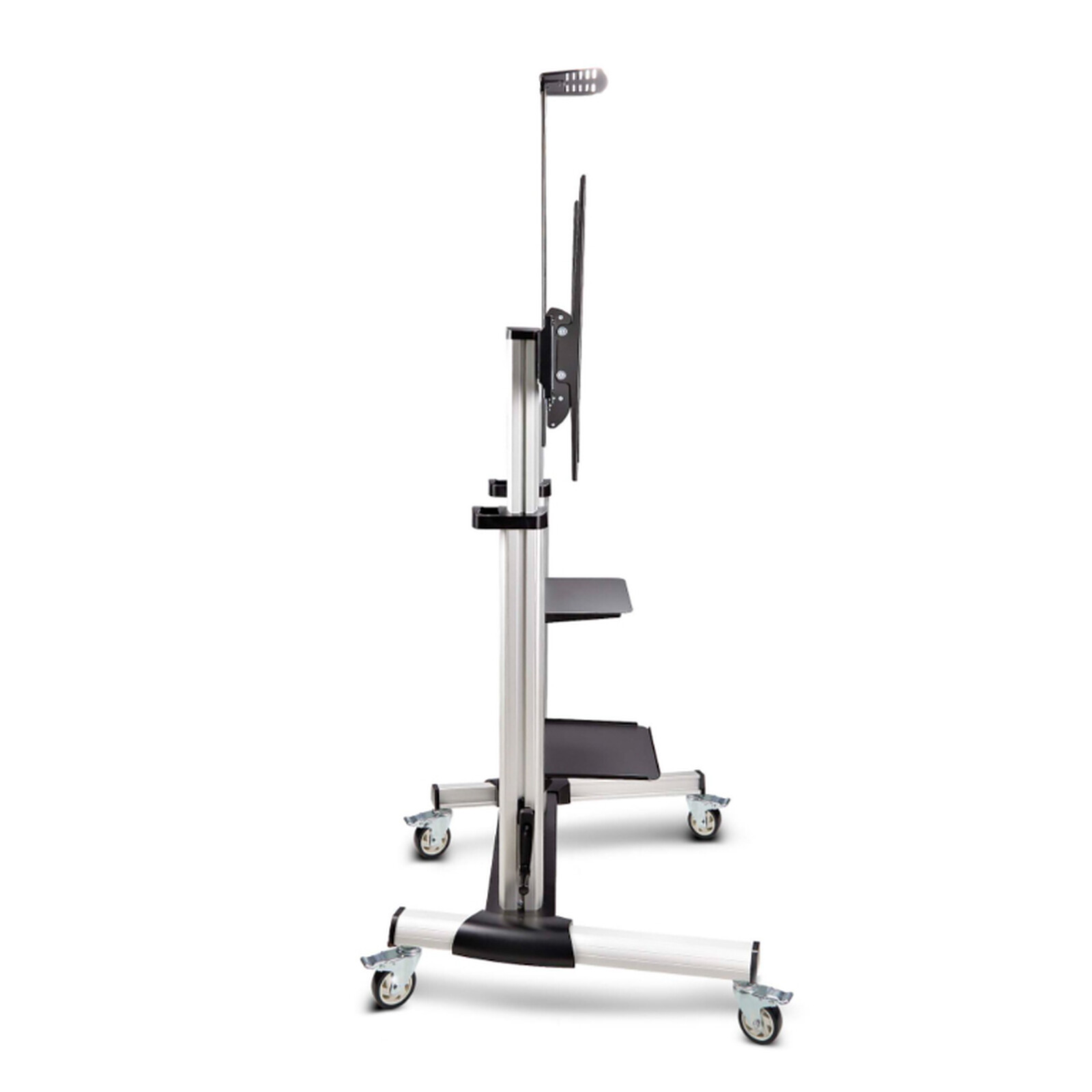 Support TV mobile pour écran de 60" à 100" et jusqu'à 100 Kg avec roulettes, pied mobile et réglable en hauteur avec 2 étagères