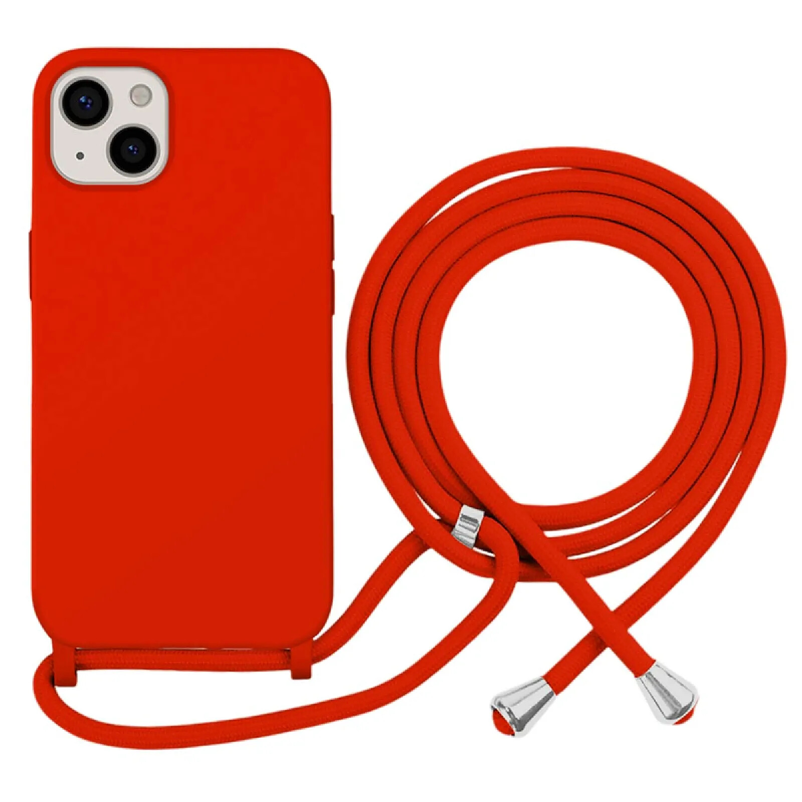 Moxie Coque pour iPhone 14 en TPU Premium Color Lace avec Cordon Tour de Cou Rouge