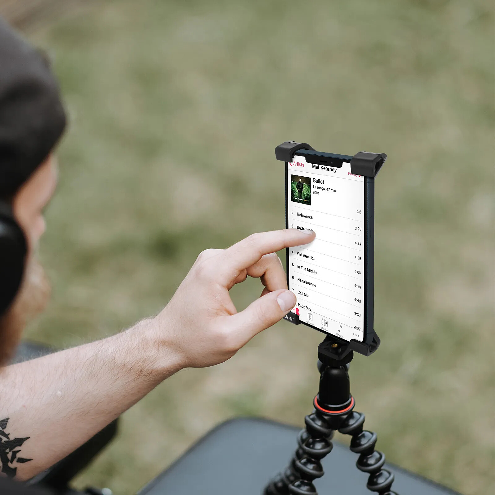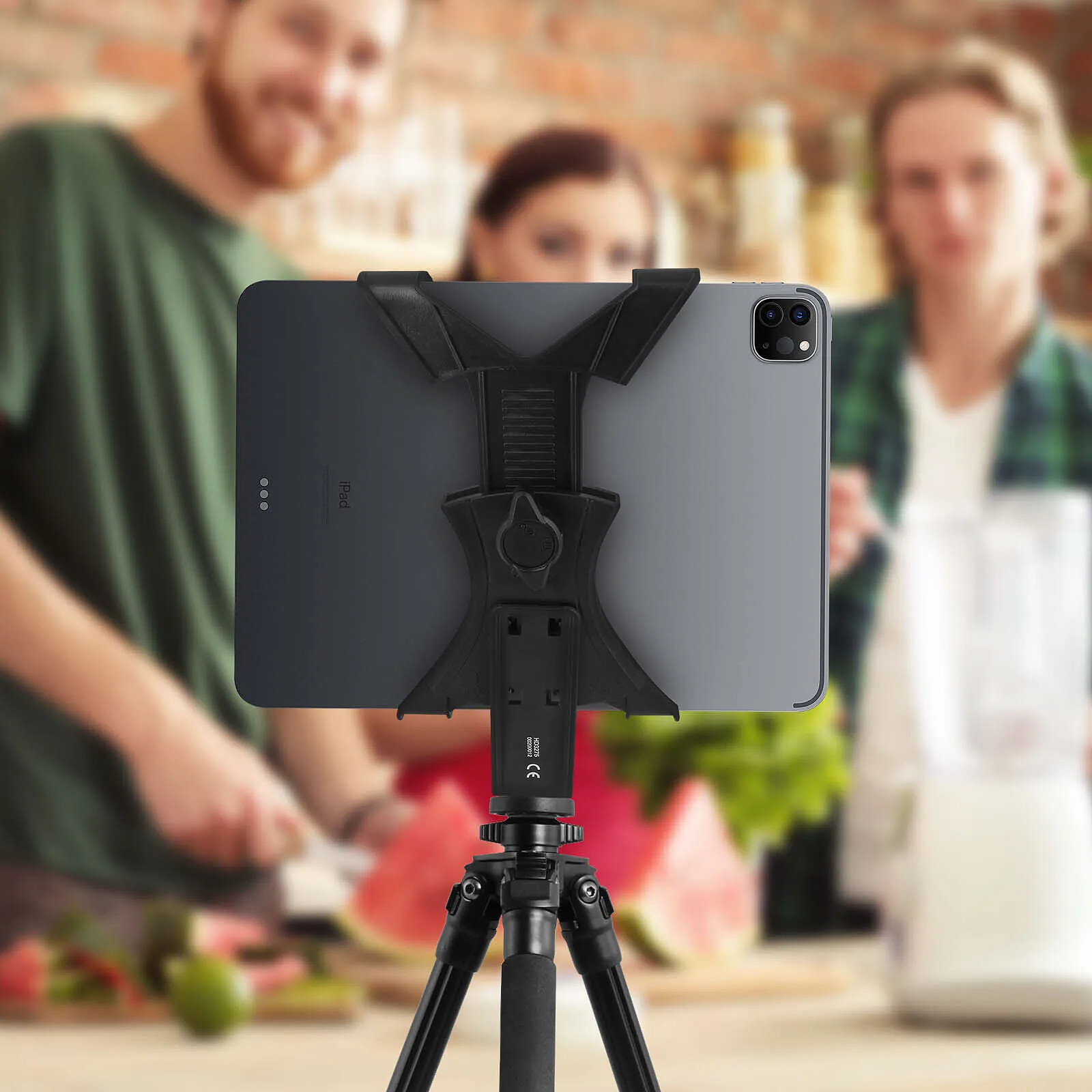 Adaptateur trépied tablette et smartphone, LinQ. Interface standard vis 1/4. Pour fixer votre appareil sur une grande variété de trépieds, stabilisateurs ou autres support. Parfait pour streamer, prendre des photos.... Grip extensible de 120mm à 195mm