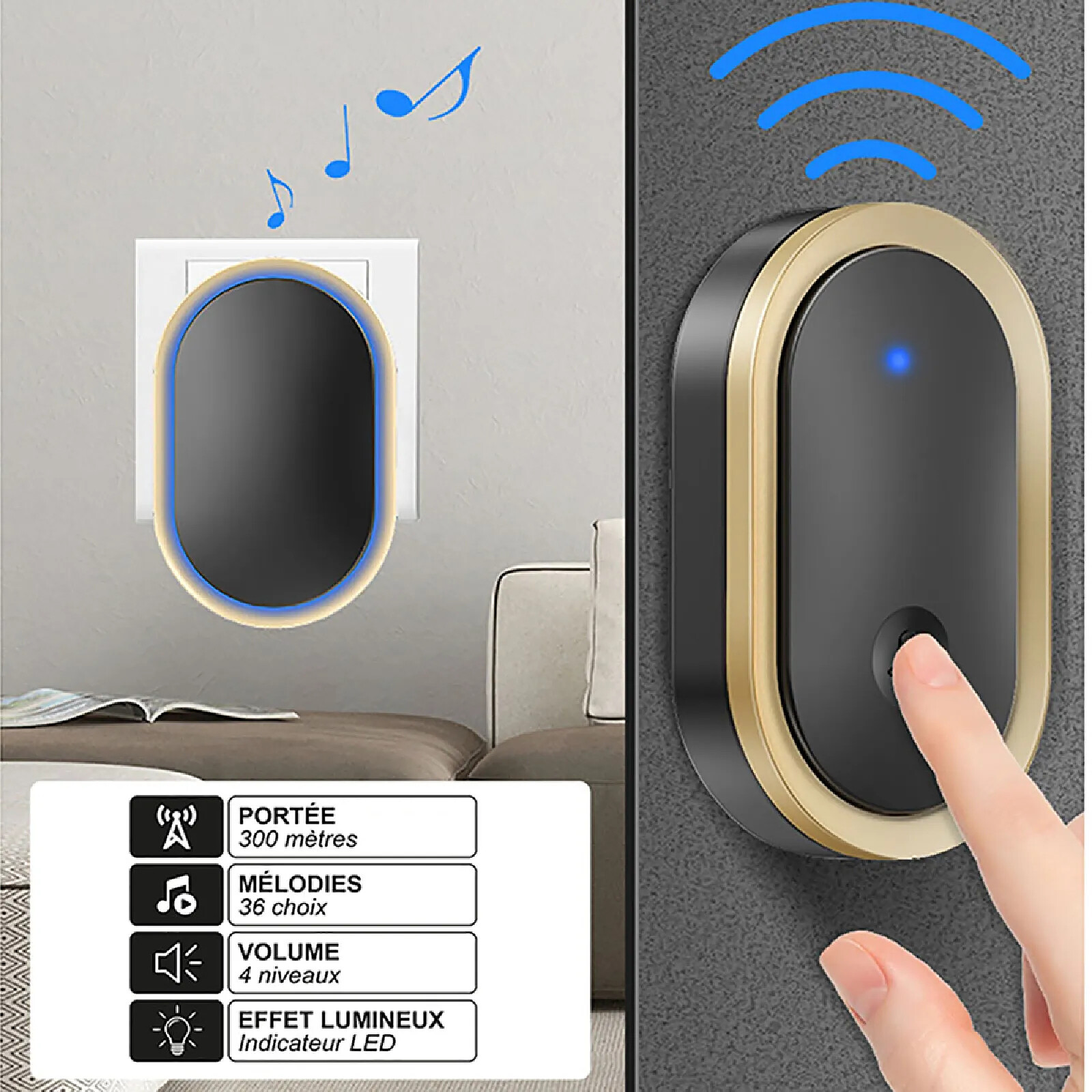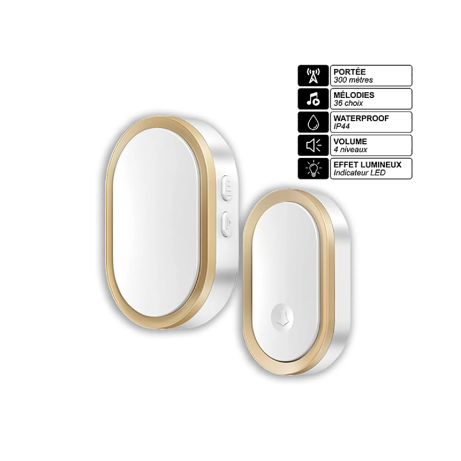 Cette sonnette sans fil connectée allie élégance et performance avec une portée de 300 mètres et 36 sonneries au choix. Son émetteur certifié étanchéité IP44 résiste aux intempéries et son volume est réglable sur 4 niveaux. Grâce à son indicateur LED lumineux, elle est également adaptée aux environnements bruyants ou aux personnes malentendantes. Installation simple sans câblage.