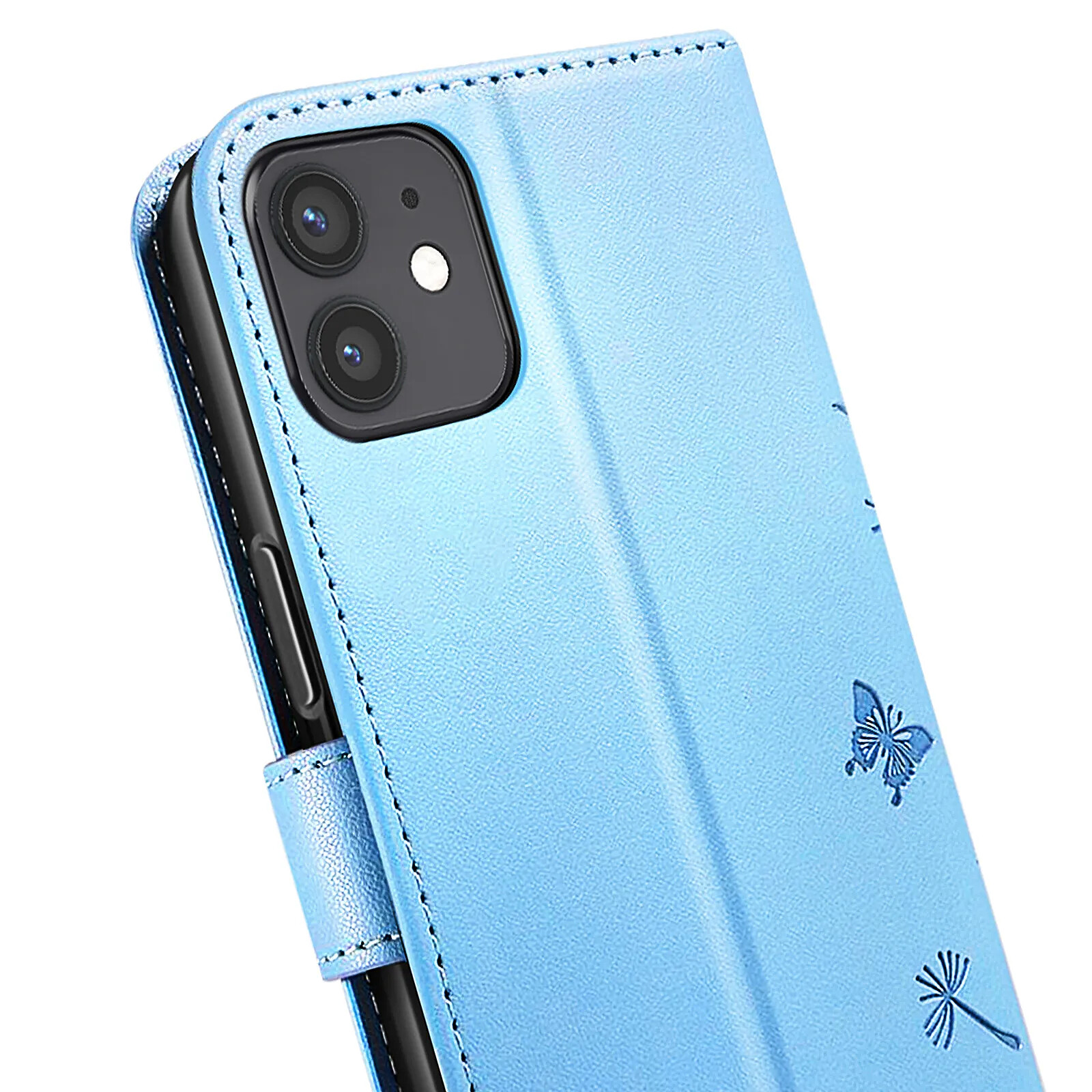 Protégez votre iPhone 12 / 12 Pro avec élégance grâce à cet étui portefeuille Zanaé bleu clair. Son similicuir haut de gamme est décoré d'un motif pissenlit et papillon gravé pour un style raffiné. Il offre une protection complète avec coque intérieure souple, fermeture magnétique, rangements pour cartes et billets, ainsi qu'un support vidéo pratique pour vos contenus multimédia.