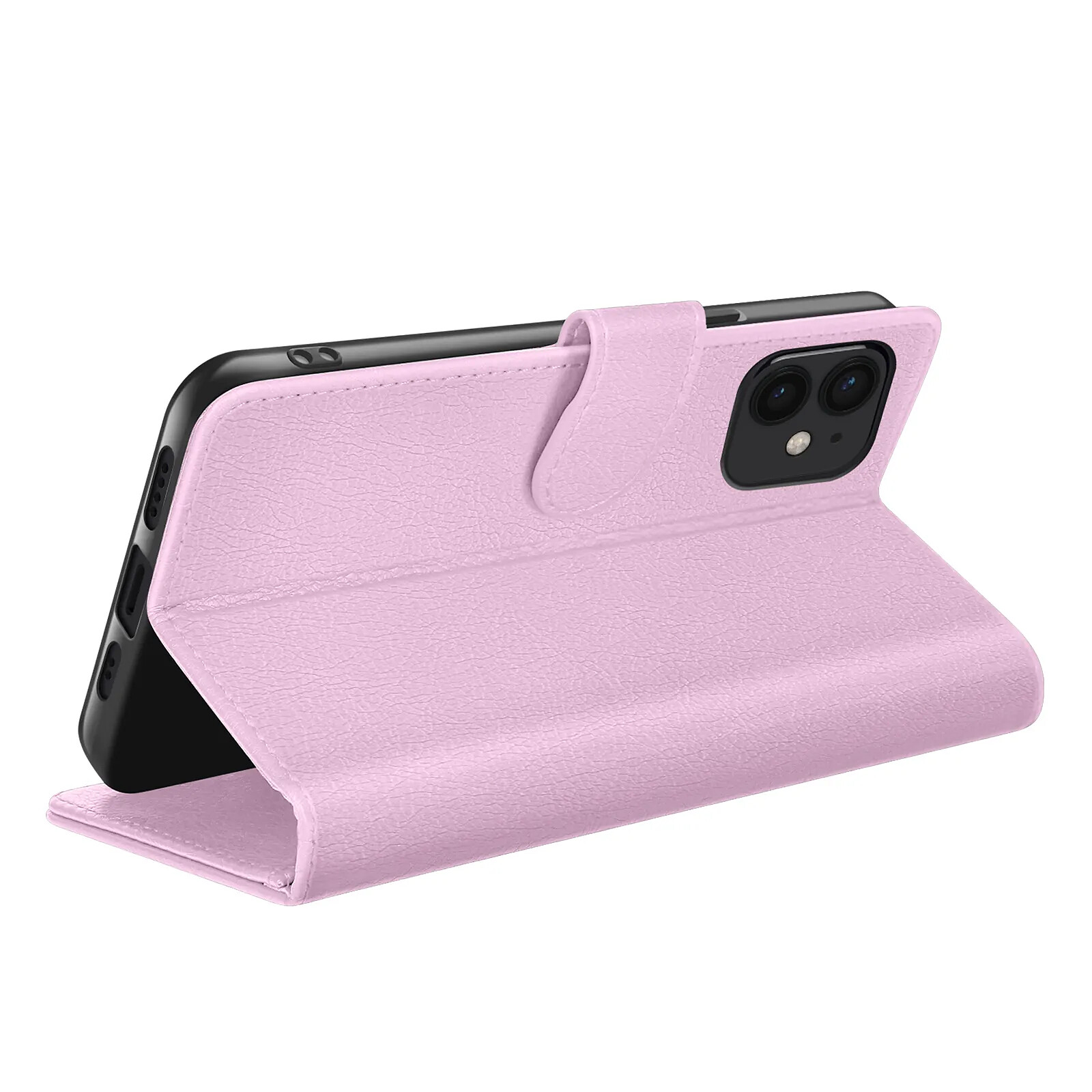 Cet étui portefeuille Zanaé rose pour iPhone 12 mini présente une texture antiglisse et chic
