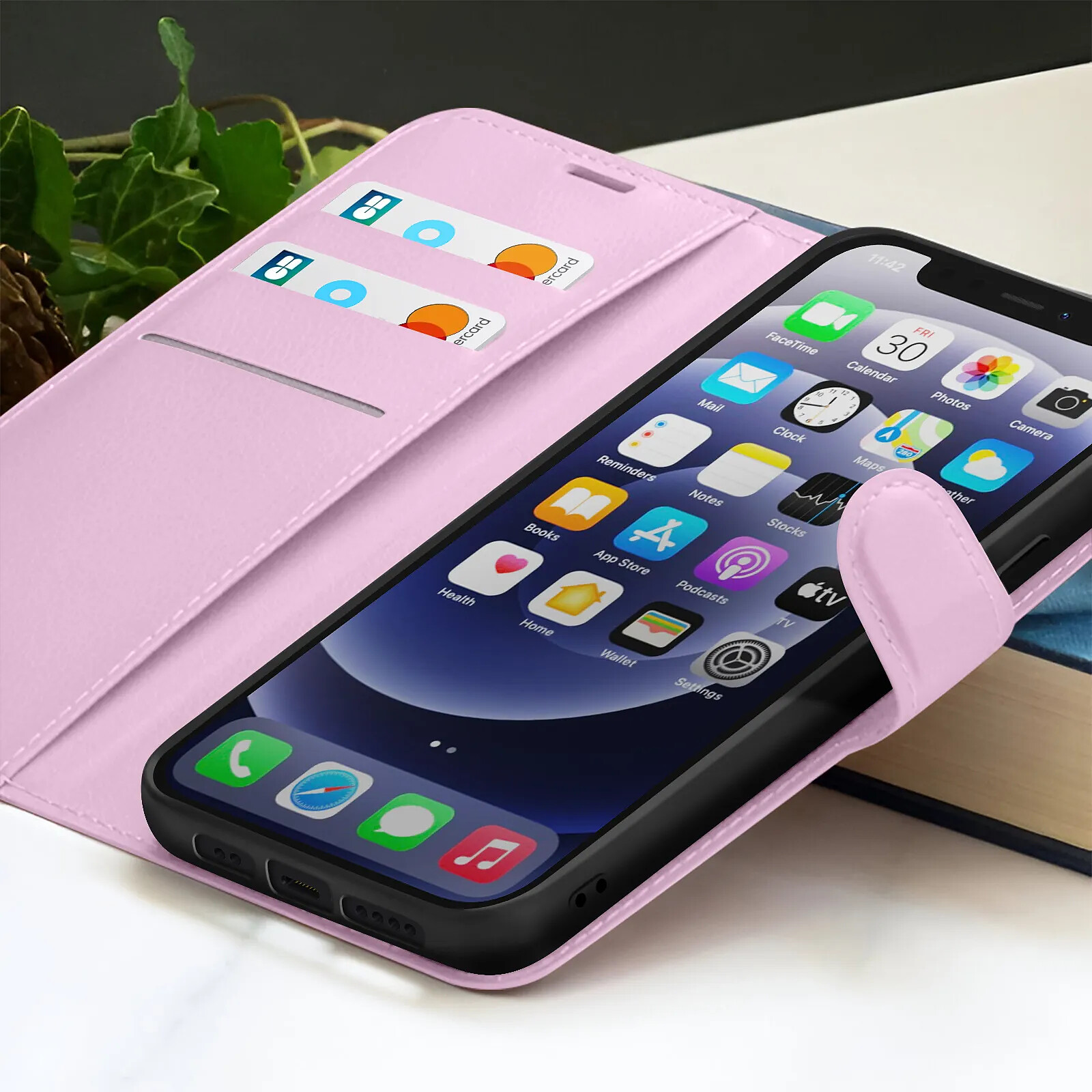 Zanaé Étui Portefeuille pour iPhone 12 mini Fonction Support et Languette Magnétique Rose |