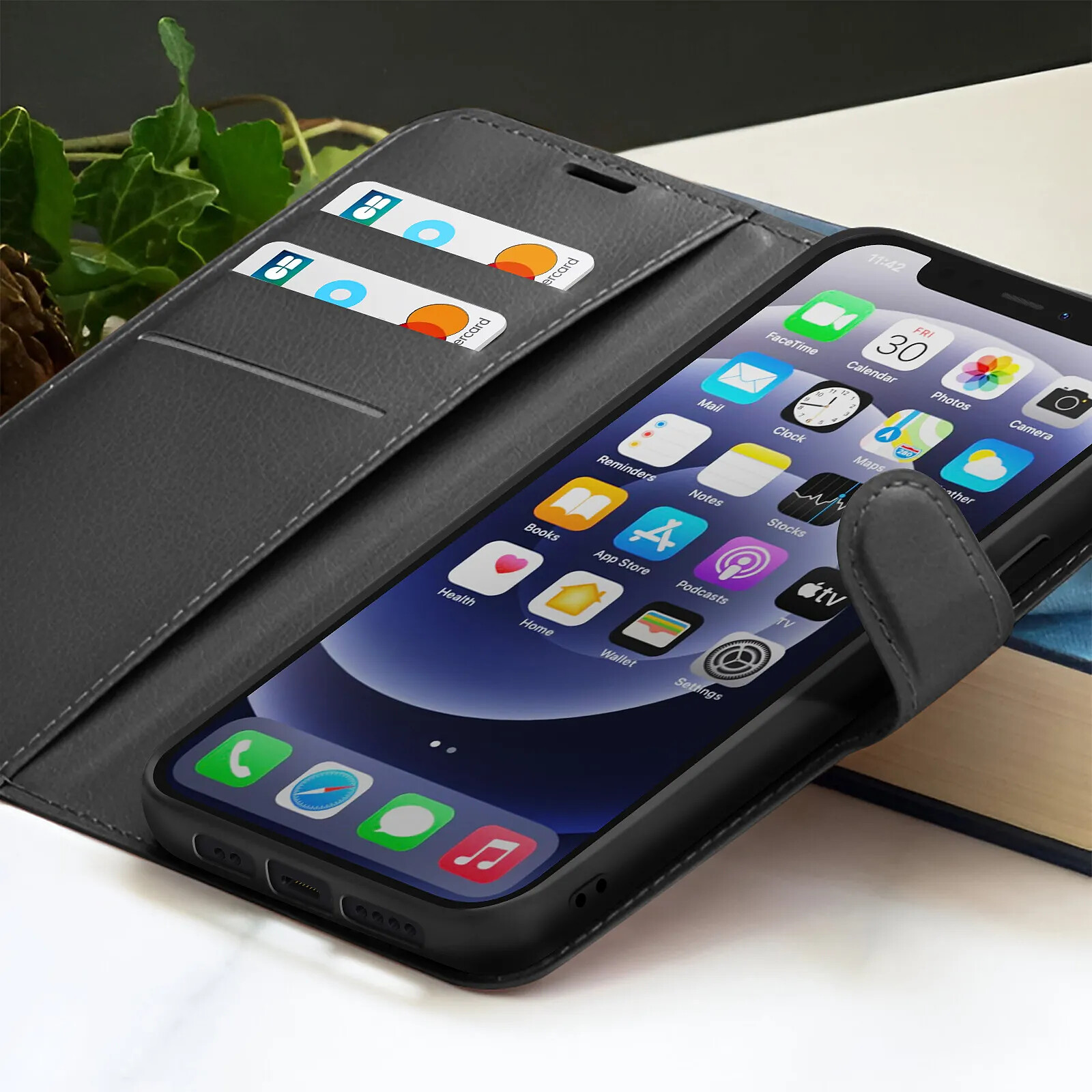 Zanaé Étui Portefeuille pour iPhone 12 mini Fonction Support et Languette Magnétique Noir