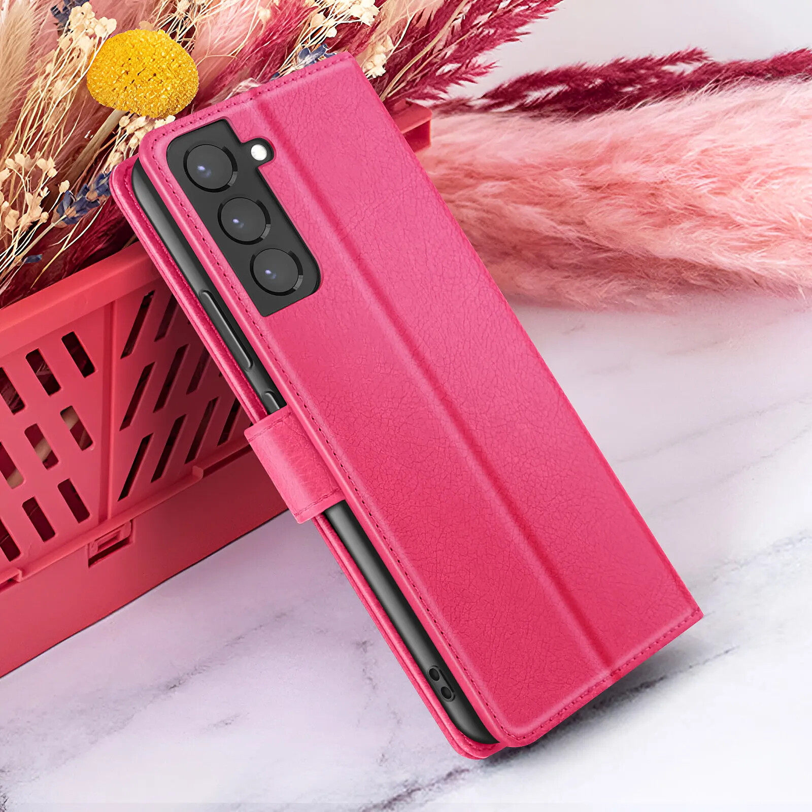 Zanaé Étui Portefeuille pour Samsung Galaxy S22 Plus Support et Languette Fuchsia