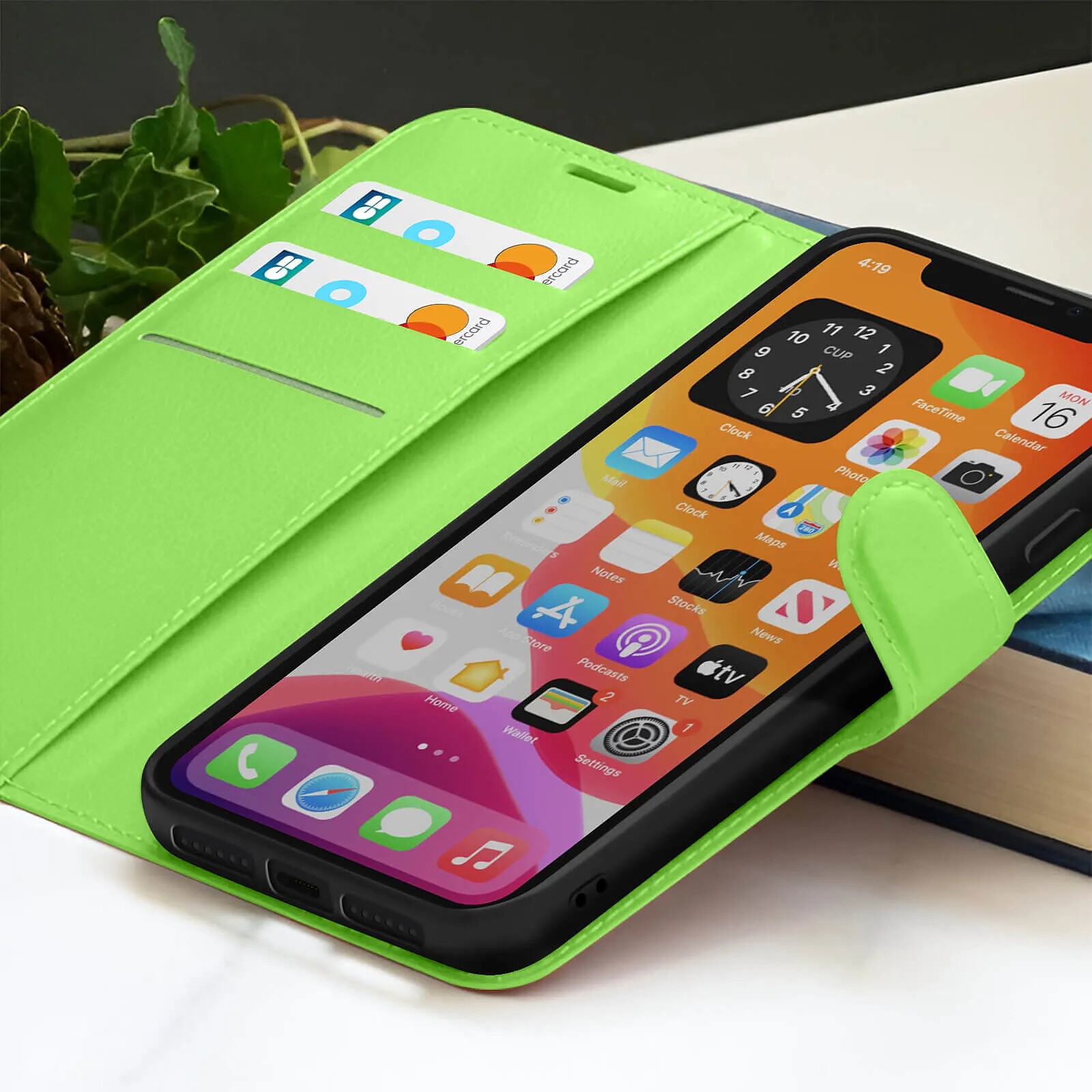 Zanaé Étui Portefeuille pour iPhone 11 Support et Languette Magnétique Vert |
