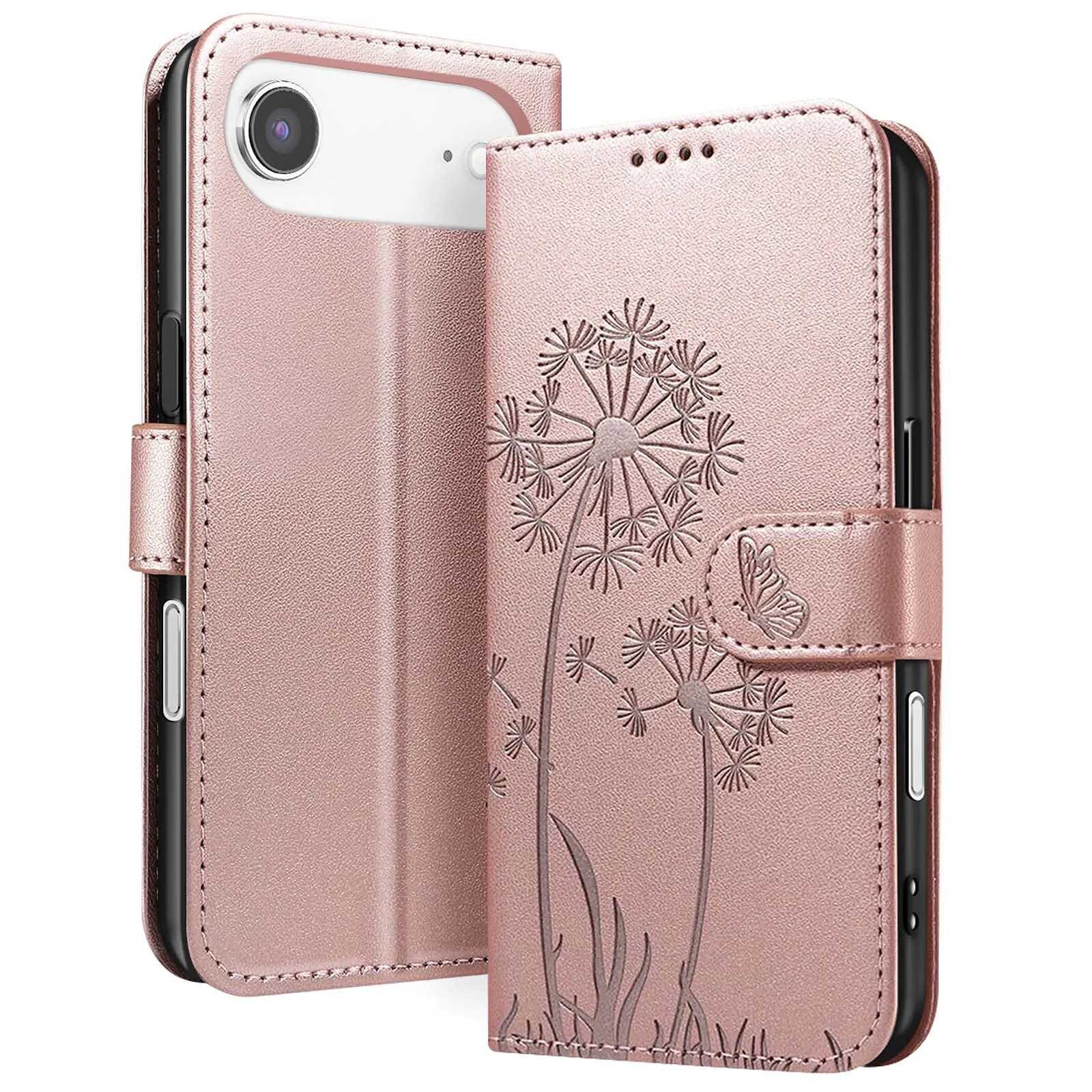 Protégez votre iPhone Air avec élégance grâce à cet étui portefeuille Zanaé rose champagne. Son similicuir haut de gamme est décoré d'un motif pissenlit et papillon gravé pour un style raffiné. Il offre une protection complète avec coque intérieure souple, fermeture magnétique, rangements pour cartes et billets, ainsi qu'un support vidéo pratique pour vos contenus multimédia.