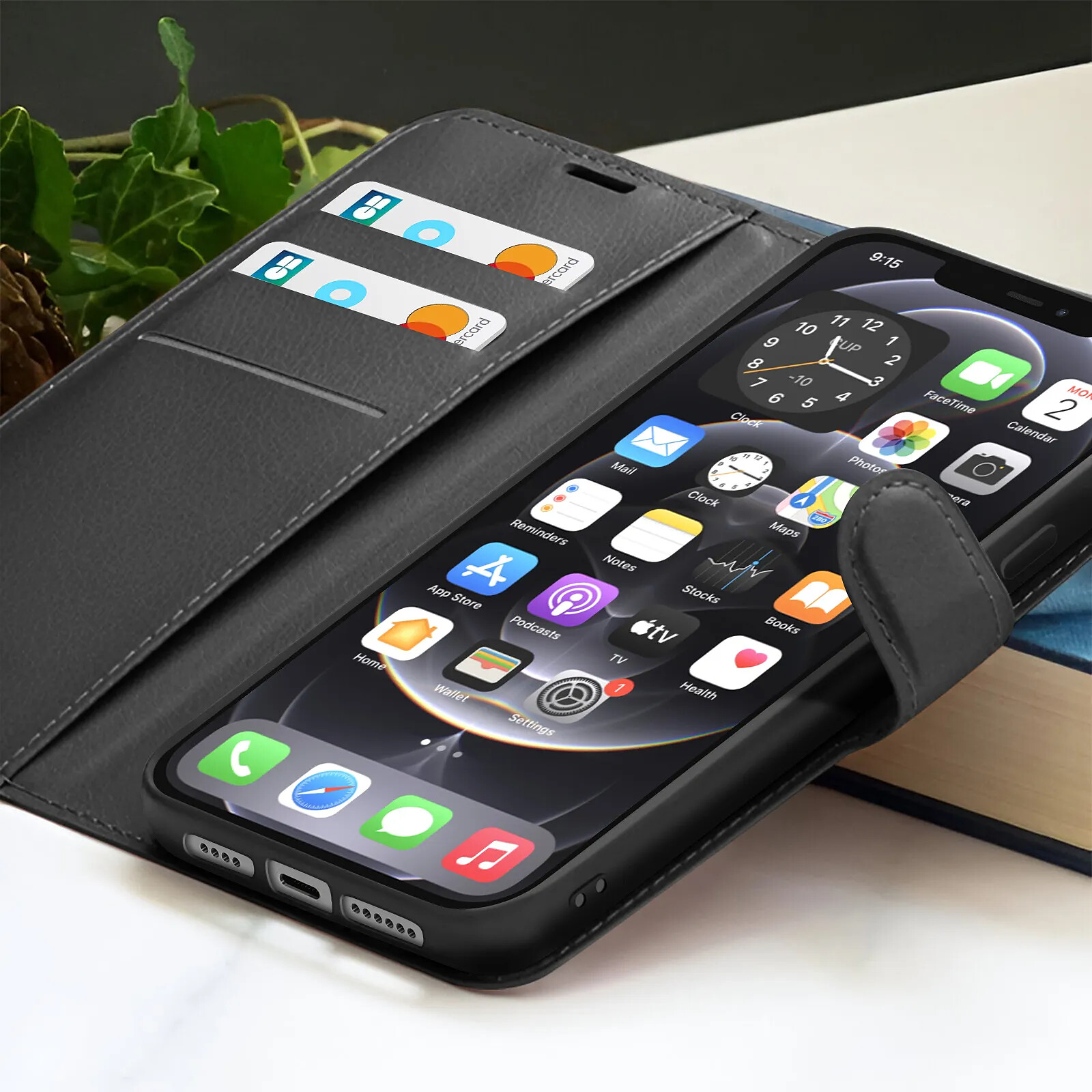 Zanaé Étui Portefeuille pour iPhone 12 Pro Max avec Support et Languette Magnétique Noir