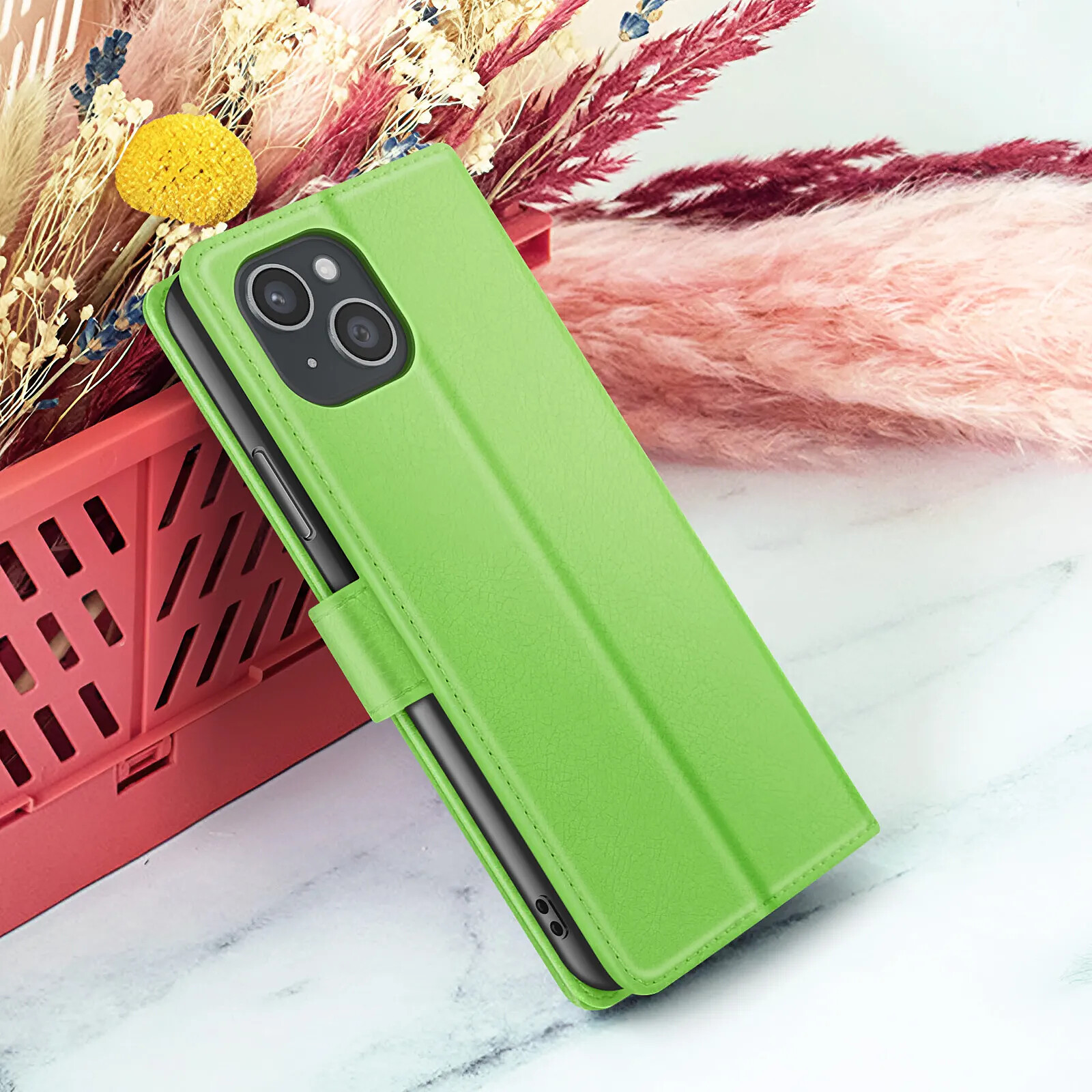 Zanaé Étui Portefeuille pour Apple iPhone 15 Plus Support et Languette Vert |