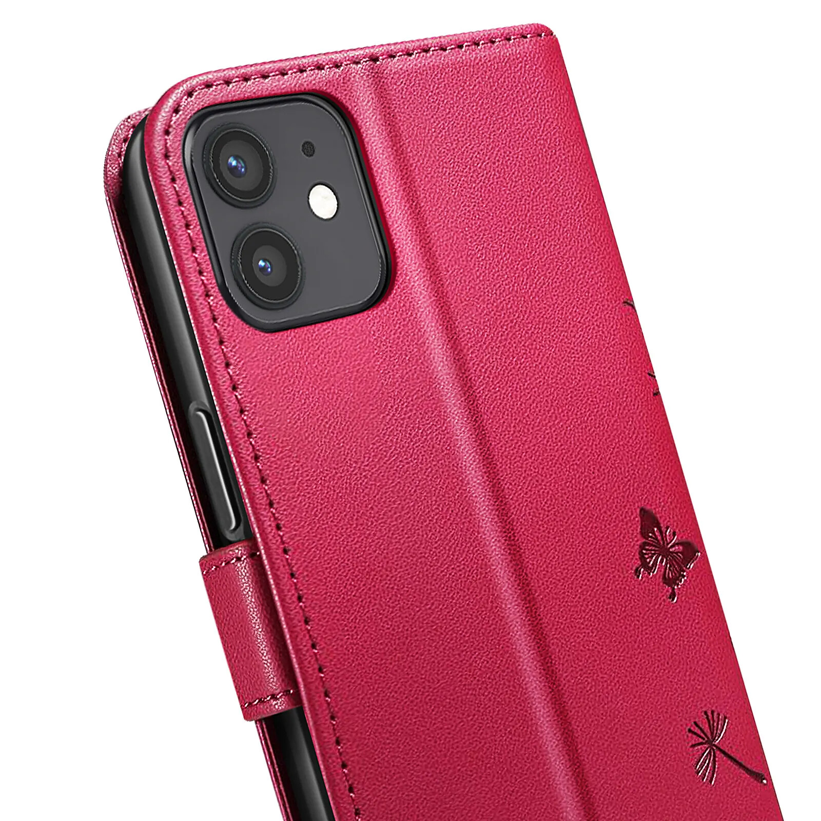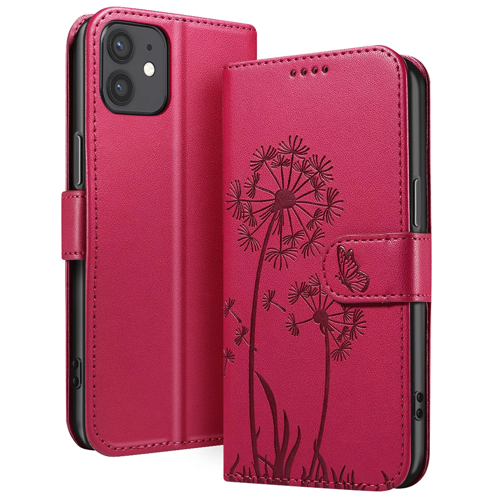 Protégez votre iPhone 12 / 12 Pro avec élégance grâce à cet étui portefeuille Zanaé rouge. Son similicuir haut de gamme est décoré d'un motif pissenlit et papillon gravé pour un style raffiné. Il offre une protection complète avec coque intérieure souple, fermeture magnétique, rangements pour cartes et billets, ainsi qu'un support vidéo pratique pour vos contenus multimédia.
