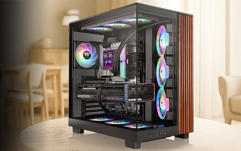Le Thermaltake View 380 XL WS ARGB se distingue comme un boîtier Moyen Tour ATX à double chambre alliant esthétique, performance et modularité. Conçu avec des éléments en bois stylisés et des panneaux en verre trempé, il met en valeur votre configuration tout en offrant une excellente visibilité sur les composants internes. Le châssis prend en charge les cartes mères standard et à connecteurs cachés des principales marques, et dispose d’une compatibilité étendue pour le refroidissement.