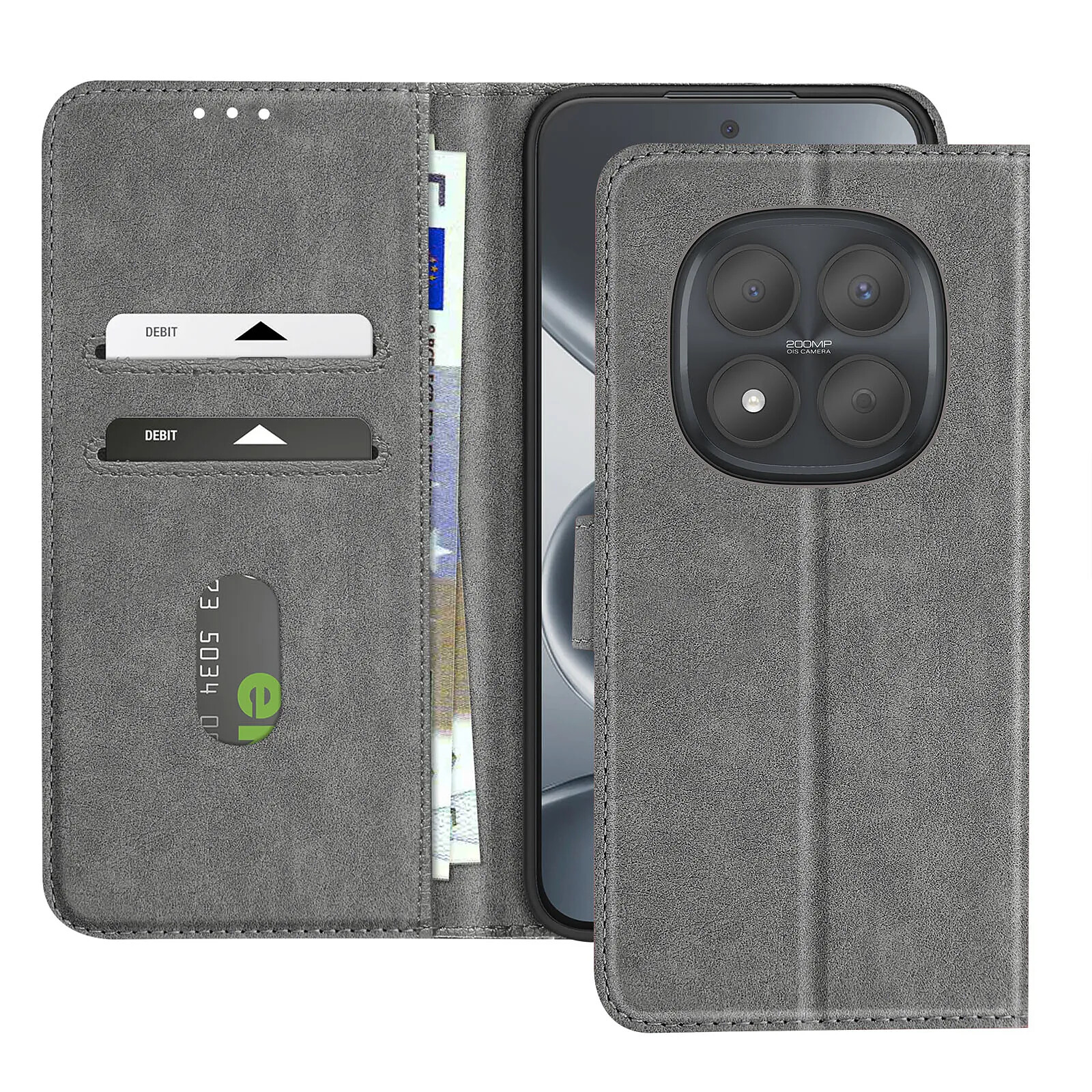 Avizar Étui Portefeuille pour Redmi Note 15 Pro 5G Chesterfield Grainé Fonction Stand Gris