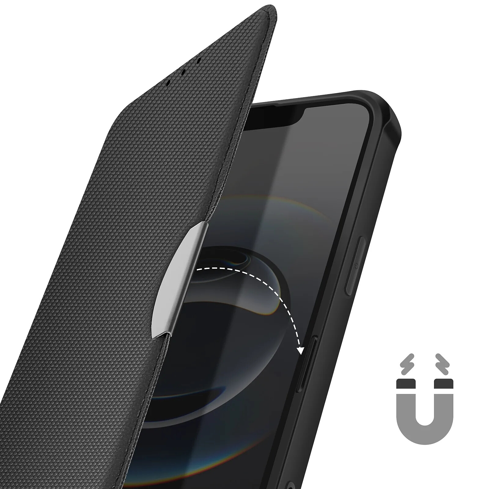 Clapet magnétique sécurisé protégeant l'écran du smartphone contre les rayures, chocs et poussières au quotidien