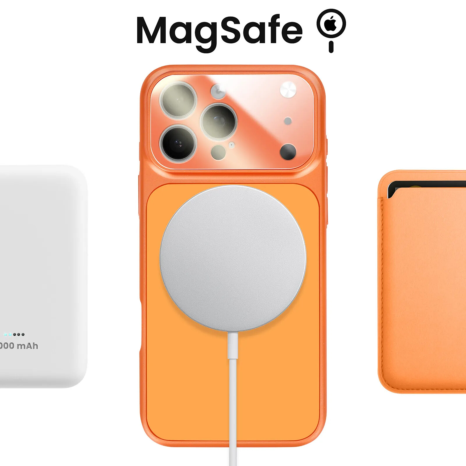 Avizar Coque MagSafe pour iPhone 16 Pro Max Rigide avec Verre Protection Caméra Orange |