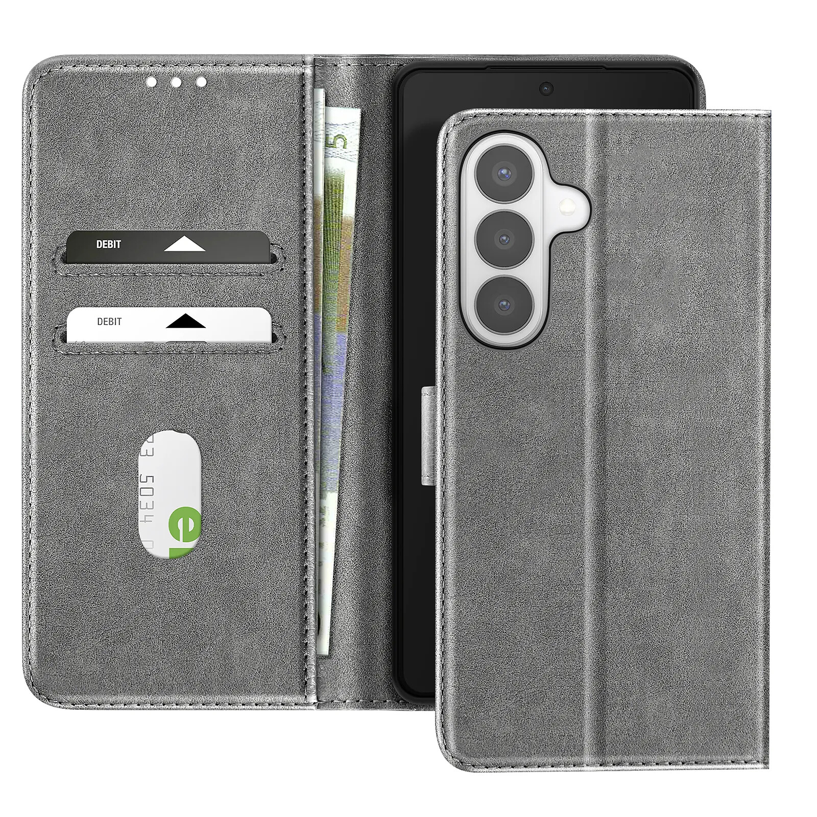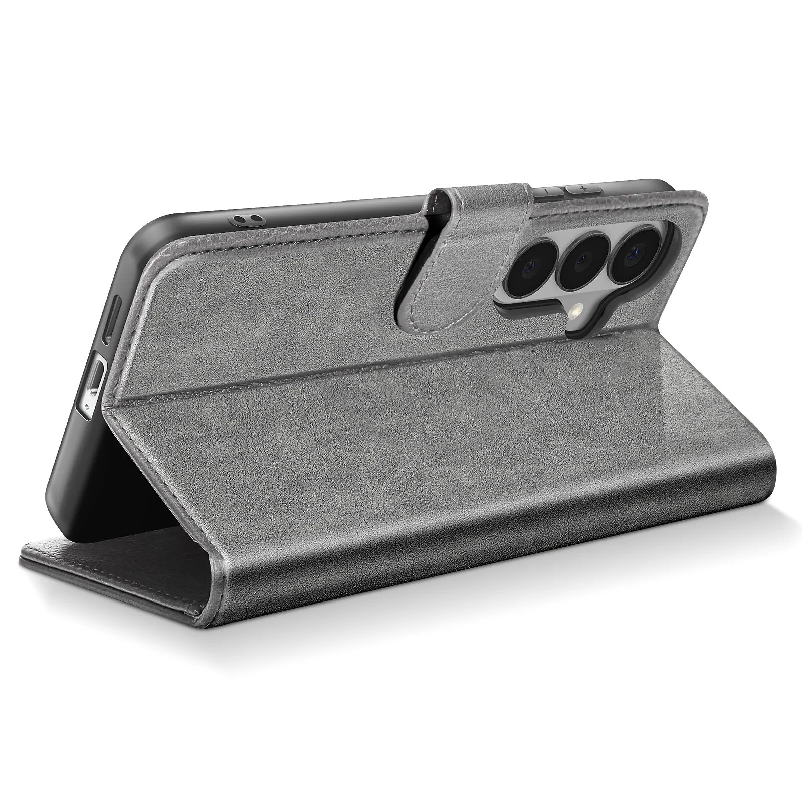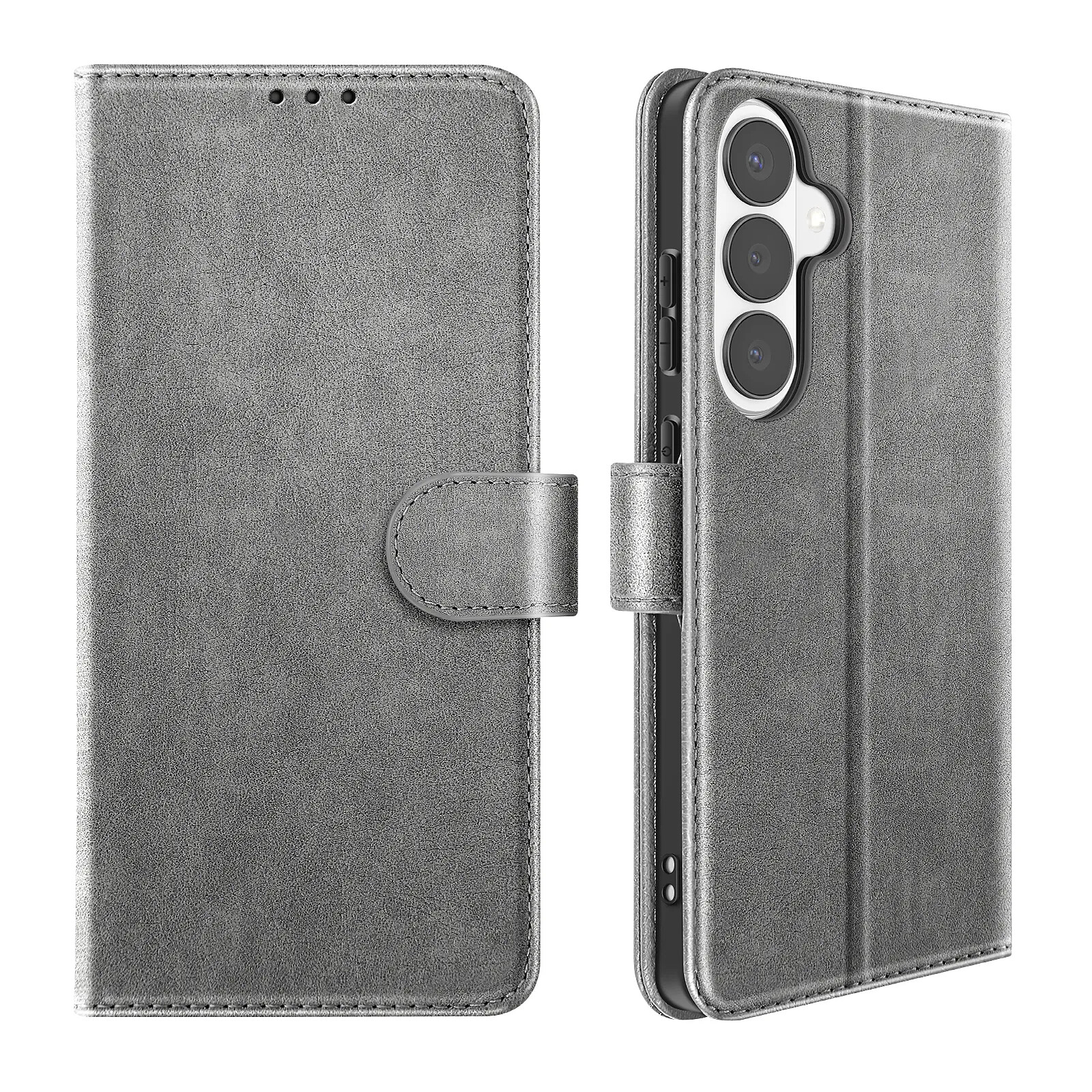 Avizar Étui Portefeuille pour Galaxy S26 Série Chesterfield Grainé Fonction Stand Gris |
