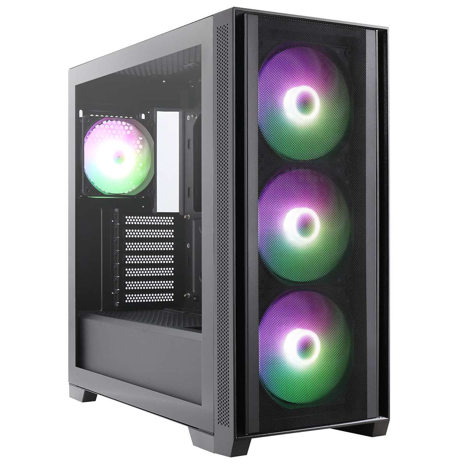 Boîtier Moyen Tour avec panneau en verre trempé et 3 ventilateurs ARGB 140 mm en façade + 1 ventilateur ARGB 120 mm à l'arrière