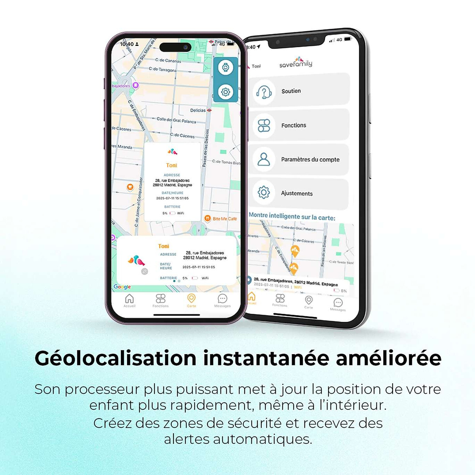 - Géolocalisation précise et rapide pour un suivi en temps réel