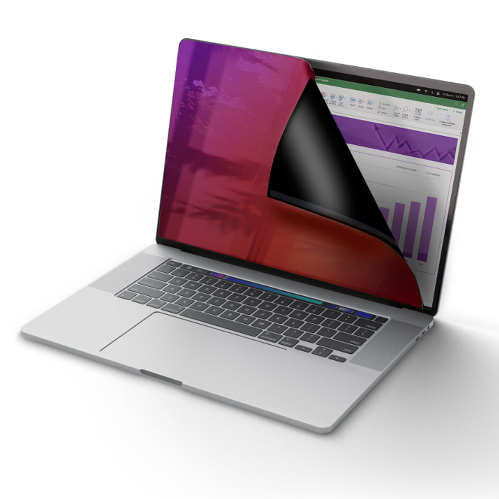Ce filtre de confidentialité pour ordinateur portable est compatible avec les MacBook Pro 16 pouces équipés des puces M1, M2, M3 et M4. Ce filtre de confidentialité doré possède une surface réfléchissante qui passe instantanément d'une vue claire à un effet miroir en dehors de l'angle de vision prévu, améliorant considérablement la confidentialité visuelle lors du travail au bureau ou dans un espace public. Il limite l’angle de vision à ±30° (soit 60° au total) grâce à une technologie à micro‑persiennes, tout en proposant une transmission de lumière de 60 % pour maintenir une bonne lisibilité. Le film intègre également une réduction de la lumière bleue jusqu’à 51 %, favorisant le confort visuel lors d’usage prolongé.