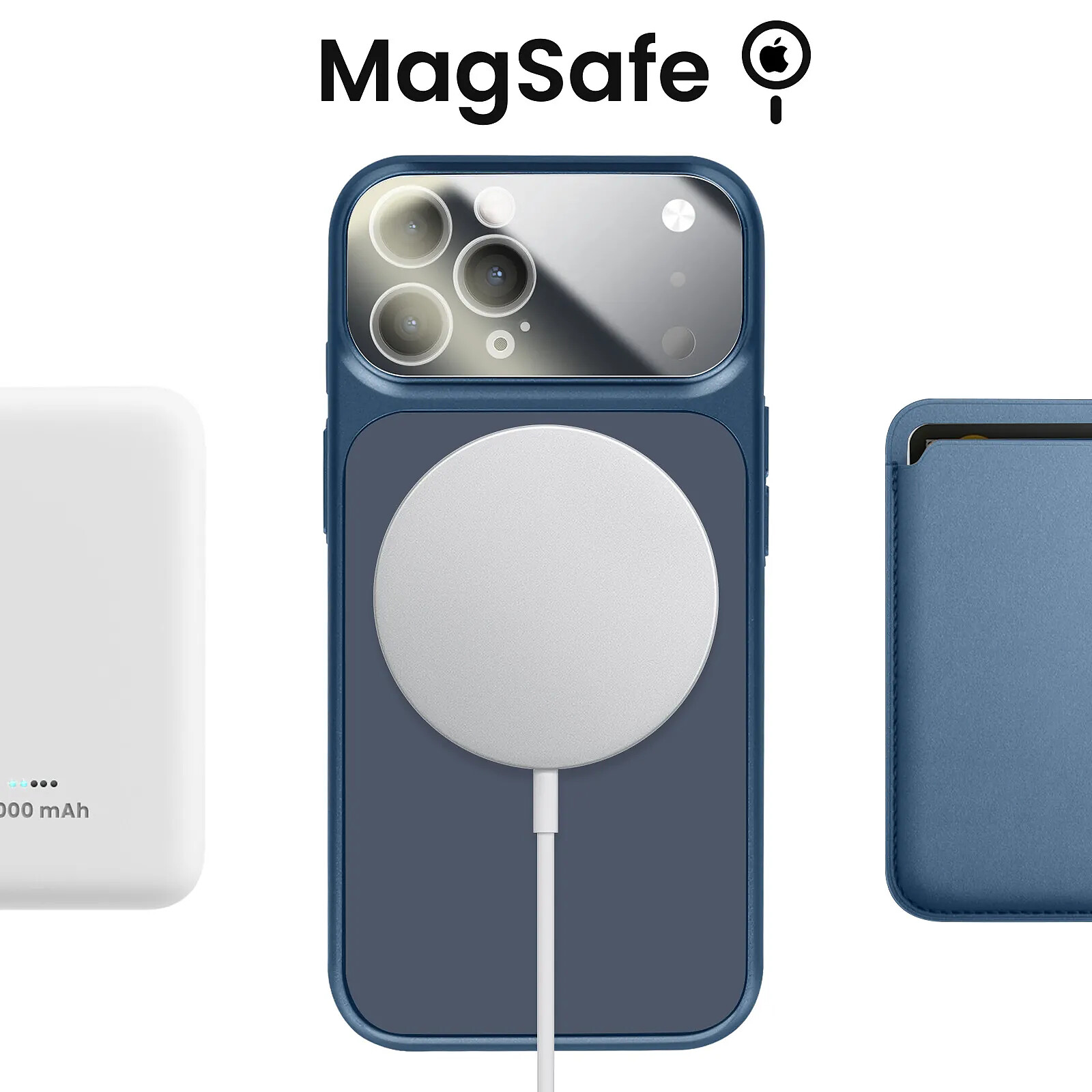 Anneau magnétique intégré compatible avec tous les accessoires MagSafe et recharge sans fil