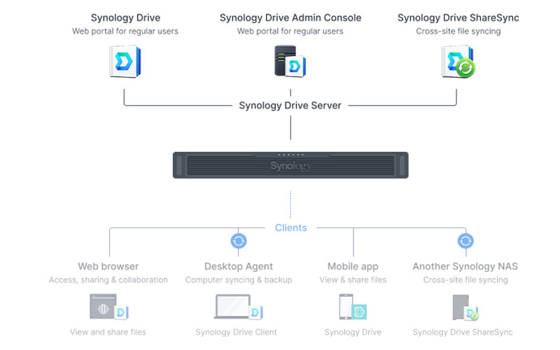 Bien plus qu’un simple serveur de stockage, le RS1626xs+ propose un véritable écosystème applicatif. Il permet de centraliser les sauvegardes, de synchroniser et partager les fichiers entre plusieurs sites, ou encore de gérer un système de vidéosurveillance étendu.