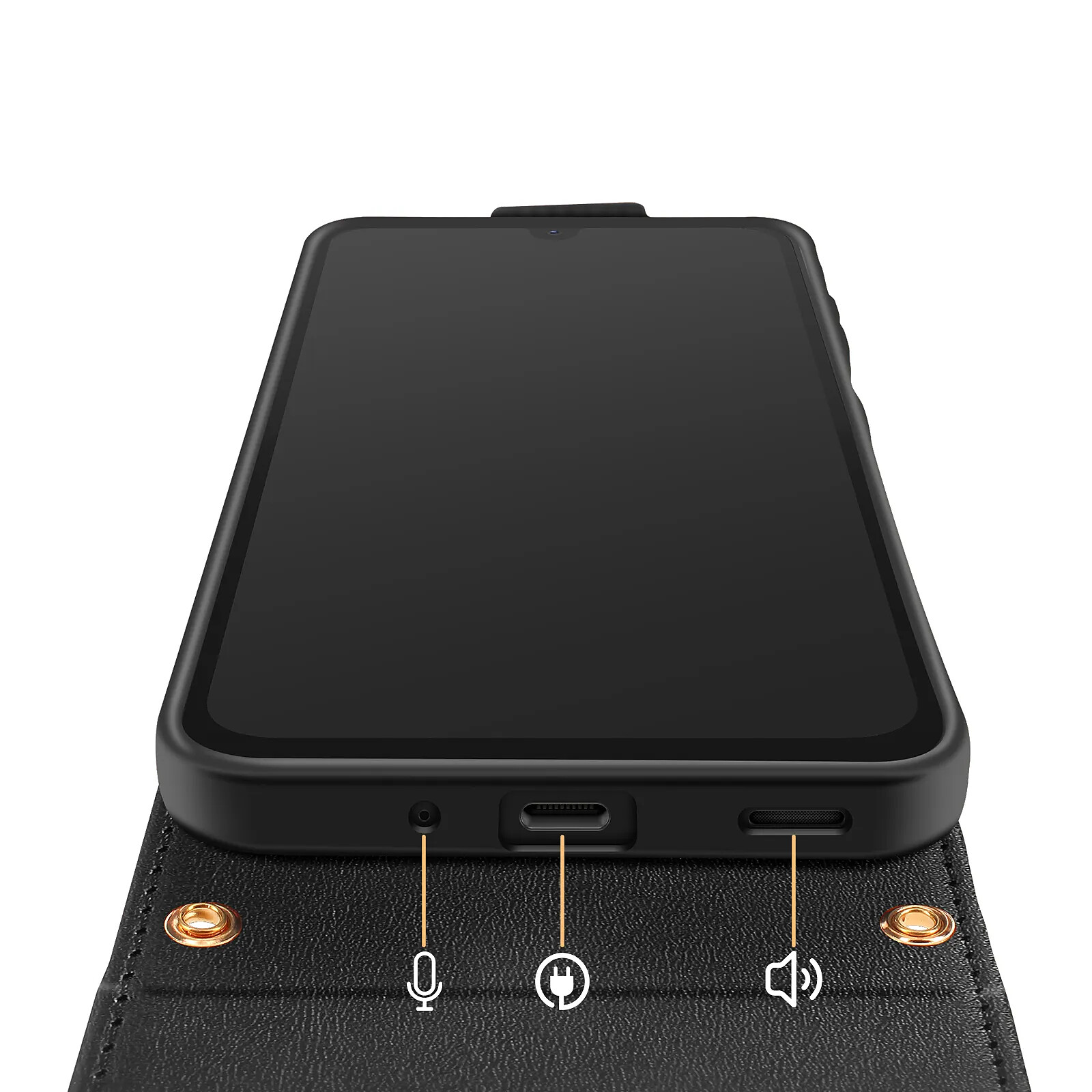 Avizar Étui pour Galaxy A17 Clapet Vertical avec Chaîne Bandoulière Métallique Noir |