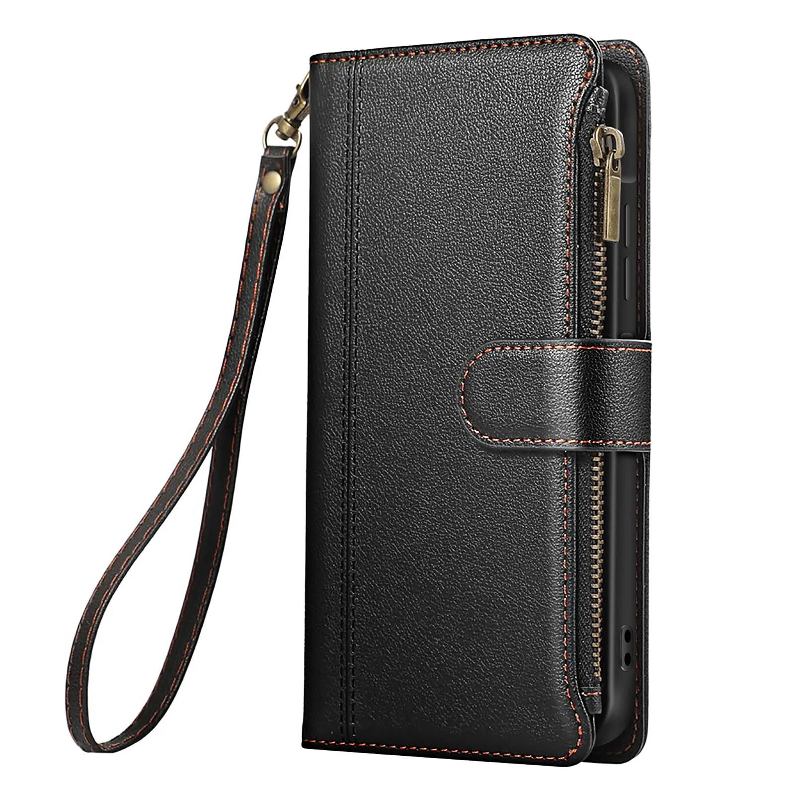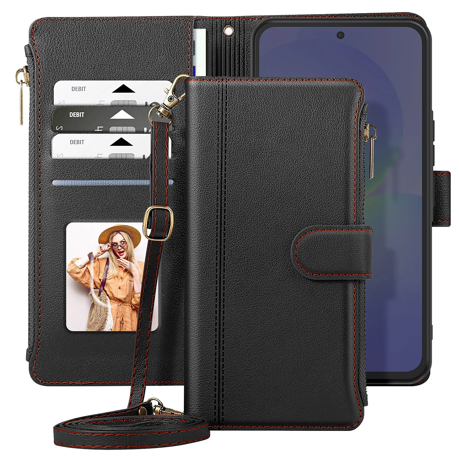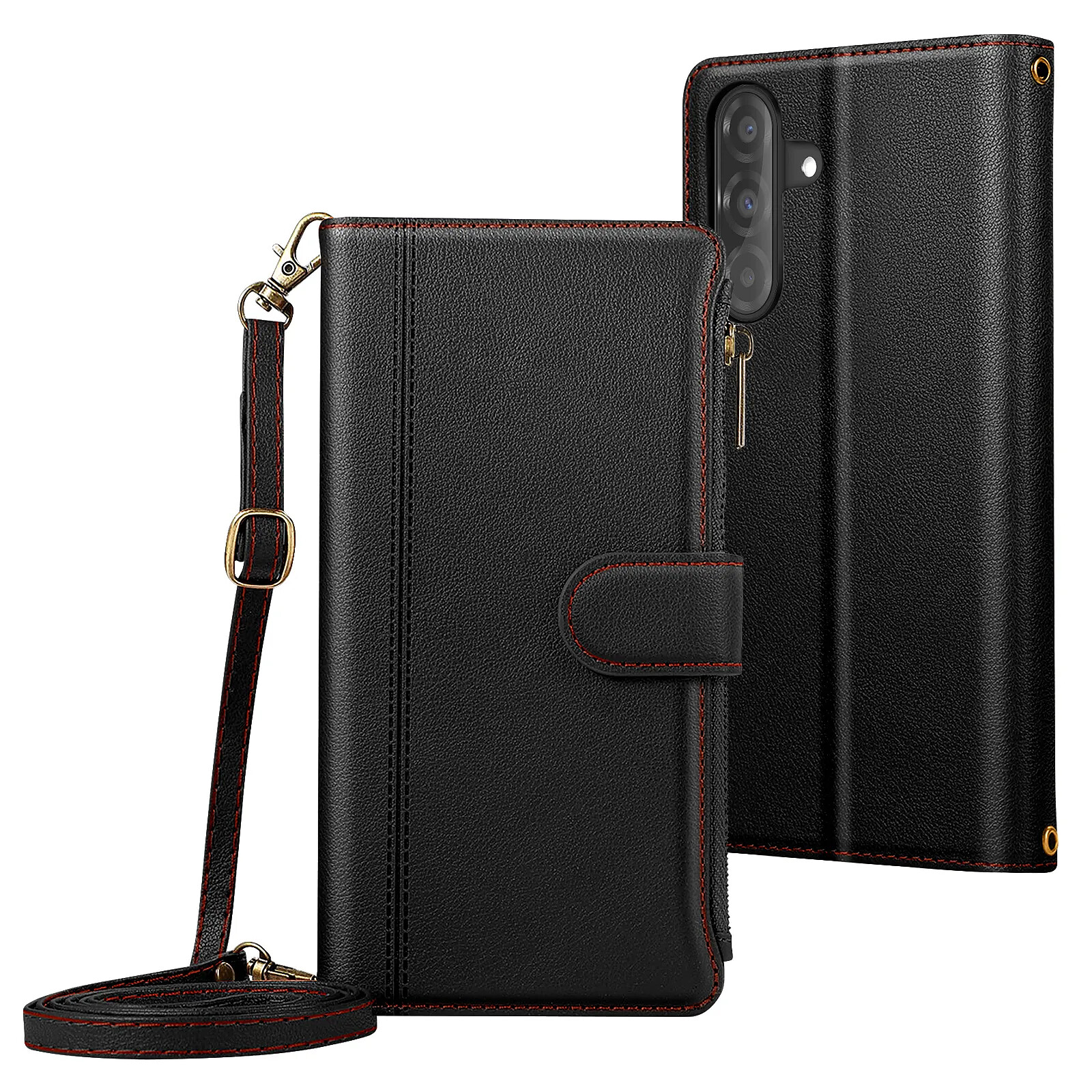 Avizar Étui Folio pour Samsung Galaxy A37 à Zip avec Bandoulière Amovible Noir