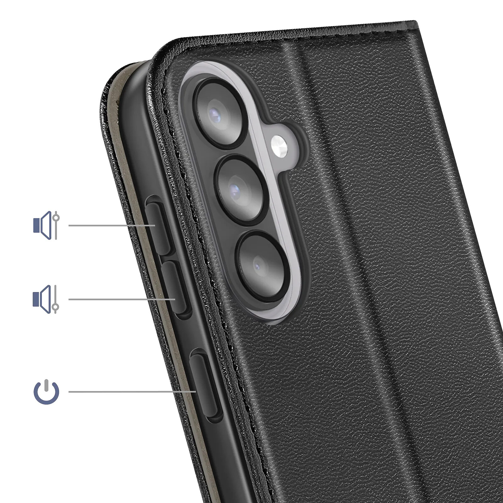 Étui clapet raffiné en similicuir avec surpiqûres élégantes compatible avec Galaxy A57