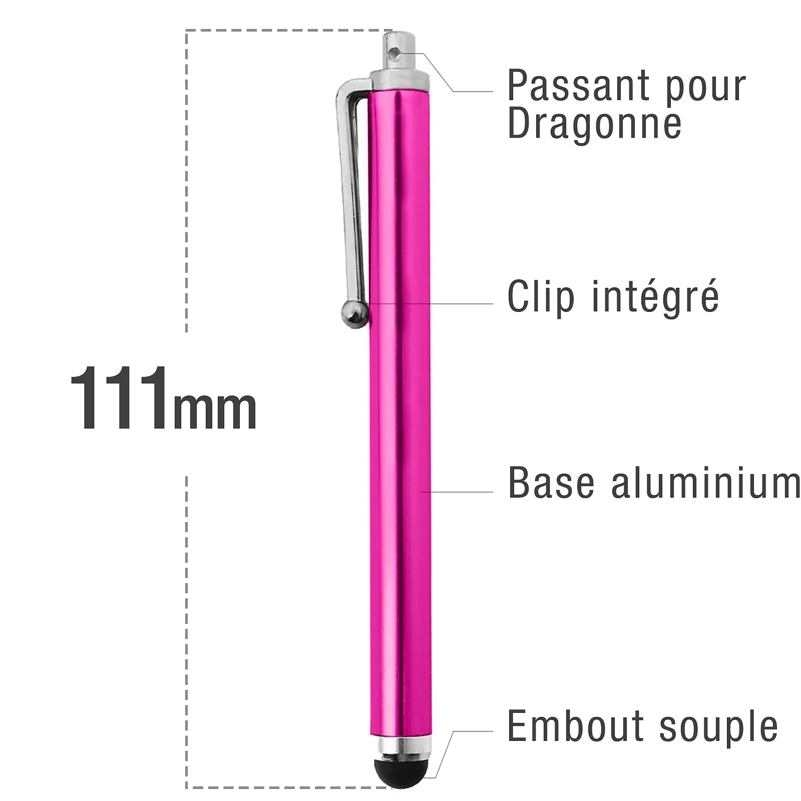 Stylet pour ecran tactile avec embout en silicone arrondi. Gagnez en securite et en precision tout en evitant de rayuer et de salir votre ecran lors de son utilisation. Son clip permet de faciliter son transport.