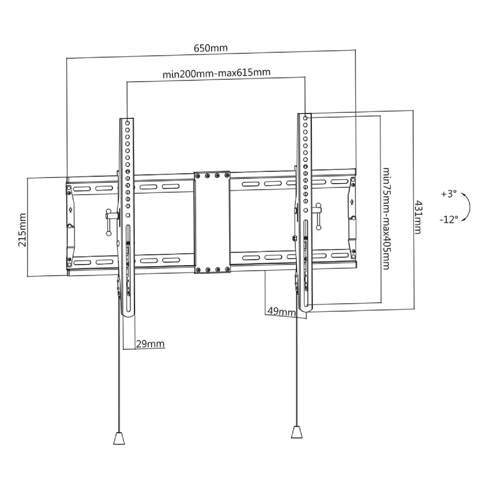 Sécurité et flexibilité se rencontrent avec les supports muraux inclinables antivol Kimex, conçus pour les écrans TV de 37 à 86 pouces. Offrant une inclinaison ajustable pour un angle de vision optimal, ces supports garantissent également une protection antivol robuste pour votre précieux écran. Libérez de l'espace, personnalisez votre angle de vision et assurez la sécurité de votre investissement avec les supports muraux inclinables antivol Kimex – la tranquillité d'esprit alliée à une expérience visuelle exceptionnelle.Le support mural inclinable KIMEX 012-1664 est conçu pour accueillir un écran de télévision de 37 à 86 pouces répondant aux standards VESA (200x200 min, 600x400 max), jusqu'à 70 kg. Ce support robuste et compact repose sur un système pliable ultra-résistant pour un gain de place maximal. Ce modèle vous est en effet livré fermé (hauteur 8cm), il vous suffit pour le fixer de le déplier et ensuite de l'installer au mur comme tout support KIMEX. Facile à installer, il dispose d'un niveau à bulle et de 2 filins verticaux pour permettre de clipser intuitivement et efficacement les deux fixations VESA à la plaque murale. Fonctionnel, il permet en effet d'orienter votre écran vers le haut et vers le bas (+3/-12°) pour s'adapter parfaitement à toutes vos configurations et pour vous procurer le meilleur confort de vision. Système antivol, une fois monté, vous avez la possibilité d'ajouter un cadenas (ref. 012-9002) pour assurer un sécurité maximale à votre écran et ainsi garantir une installation en lieu public. Ce support se caractérise enfin par son design moderne et discret. Ultra-plat, il laisse en effet un espace de seulement 4,9 cm par rapport au mur pour apporter le meilleur rendu esthétique à votre intérieur. Le support mural inclinable KIMEX 012-1664 convient ainsi aux professionnels et aux particuliers qui recherchent une solution à la fois facile à installer, solide et fonctionnelle.