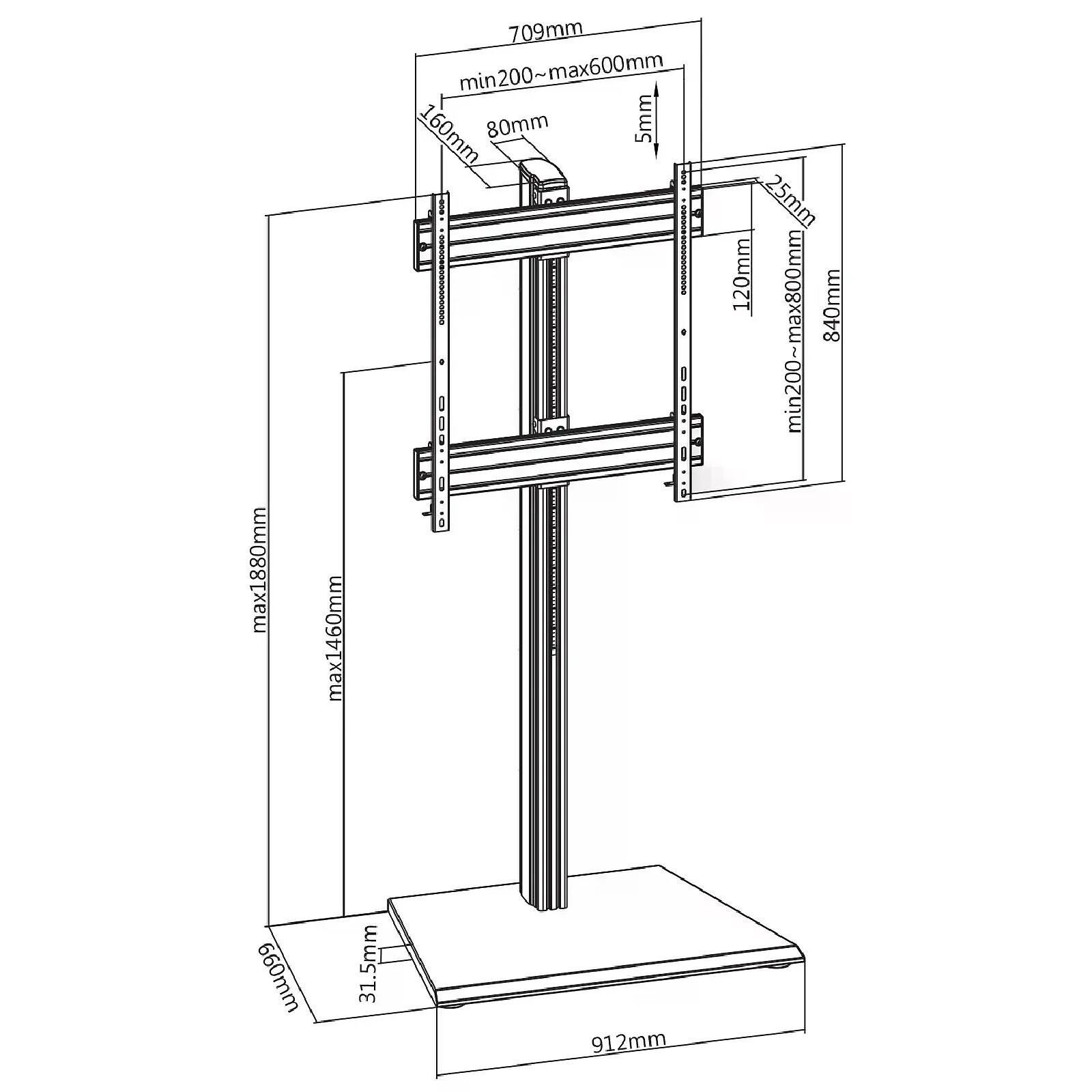 Optimisez votre espace avec les supports sur pied Pro Modular de Kimex, la référence ultime en matière de stabilité et de polyvalence. Conçus pour s'adapter à divers écrans et équipements, ces supports offrent une solution modulable de haute qualité pour vos besoins d'affichage. Robustes, élégants et faciles à ajuster, les supports sur pied Pro Modular créent une expérience visuelle exceptionnelle tout en ajoutant une touche moderne à votre environnement. Transformez votre espace avec les supports sur pied Pro Modular de Kimex – l'alliance parfaite entre fonctionnalité avancée et design ingénieux.Le support 031-1110K1 a été conçu pour installer et supporter en toute confiance un écran TV ou moniteur jusqu'à 100" répondant aux standards VESA (200x200 min, 800x600mm max), pesant jusqu'à 150 kg. Robuste et fonctionnel, il repose sur une solide base à poser au sol et sur un mât qui vous permet de régler la hauteur de votre écran (150 cm max, centre écran) pour s'adapter parfaitement à votre besoin. Les barres de fixation VESA disposent de l'option antivol pour ajouter un cadenas et assurent une sécurité optimale à votre écran. Ce pied TV propose également sur sa partie arrière des cache câbles efficaces pour faire passer toute la connectique de manière discrète et peut accepter une multiprise pour alimenter l'écran en toute facilité. Avec ses caractéristiques, ce support répond parfaitement aux besoins des professionnels de l'évènementiel et de l'affichage sur des salons, dans des magasins et dans tous lieux publics. Avantages : Hauteur de l'écran réglable pour s'adapter à tous vos besoins, Fonction antivol pour une sécurité optimale de l'écran (cadenas en option), Passage des câbles sur la partie arrière pour le meilleur rendu esthétique.