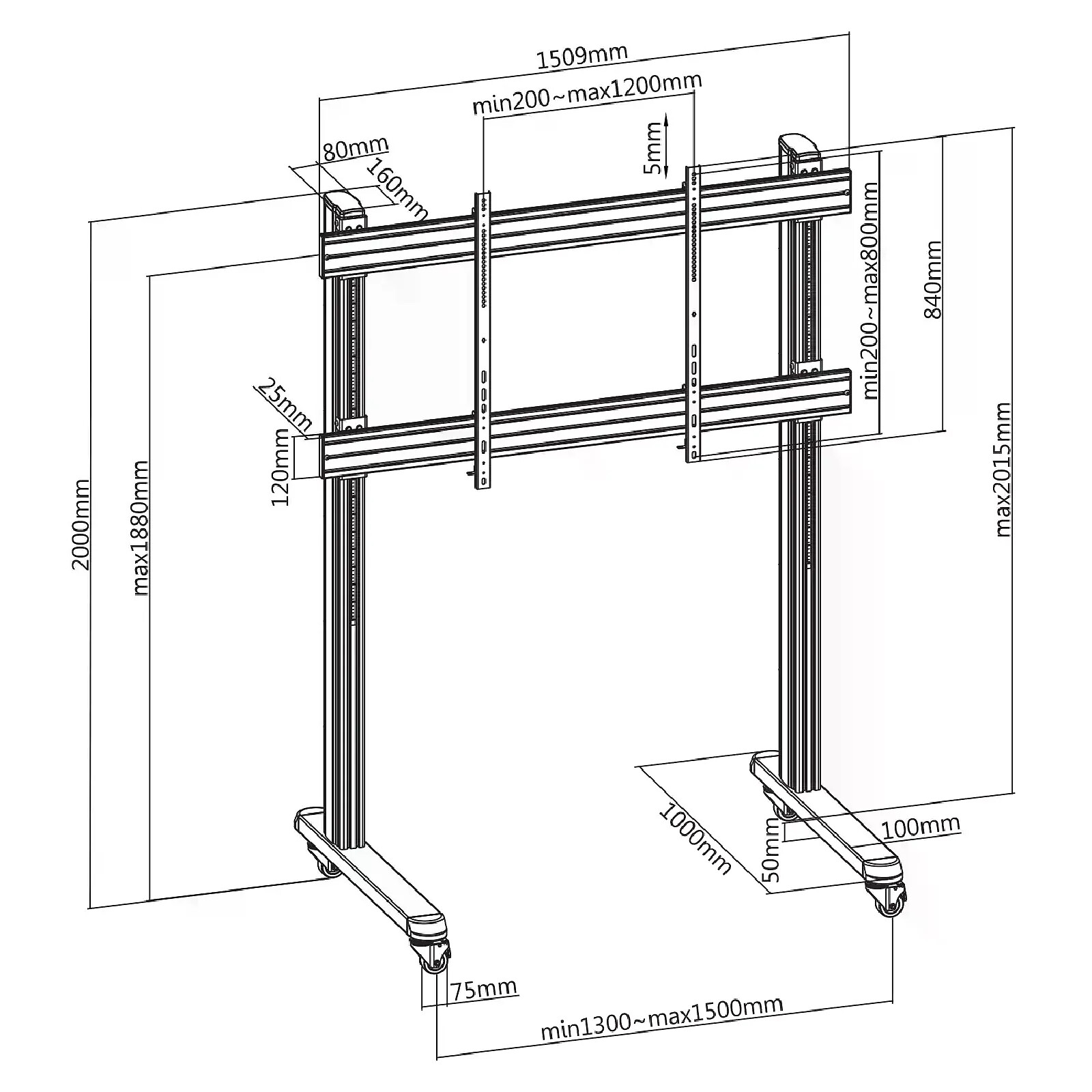 Support sur pieds pour écran TV 70''-120'' - A roulettes