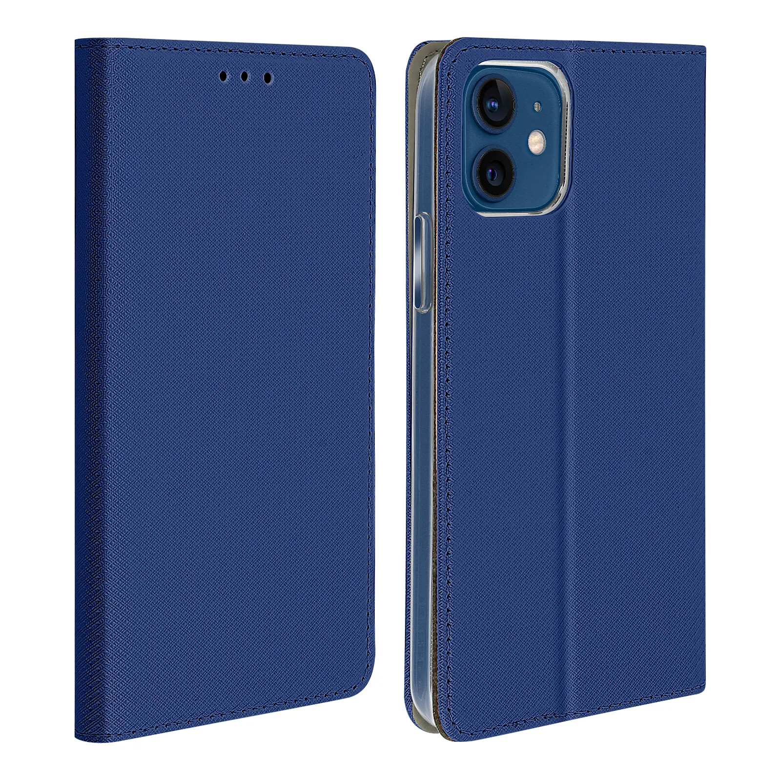 Housse protection intégrale Apple iPhone 12 Mini. Revêtement en éco-cuir, aspect granulé. Design élégant et chic. Rangement pour carte. Clapet modulable fonction support. Rabat magnétique. Fonctions accessibles.